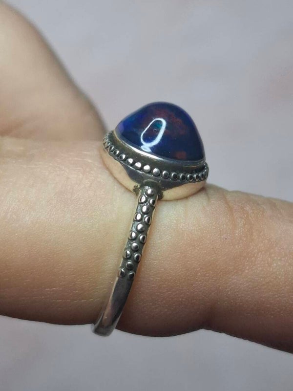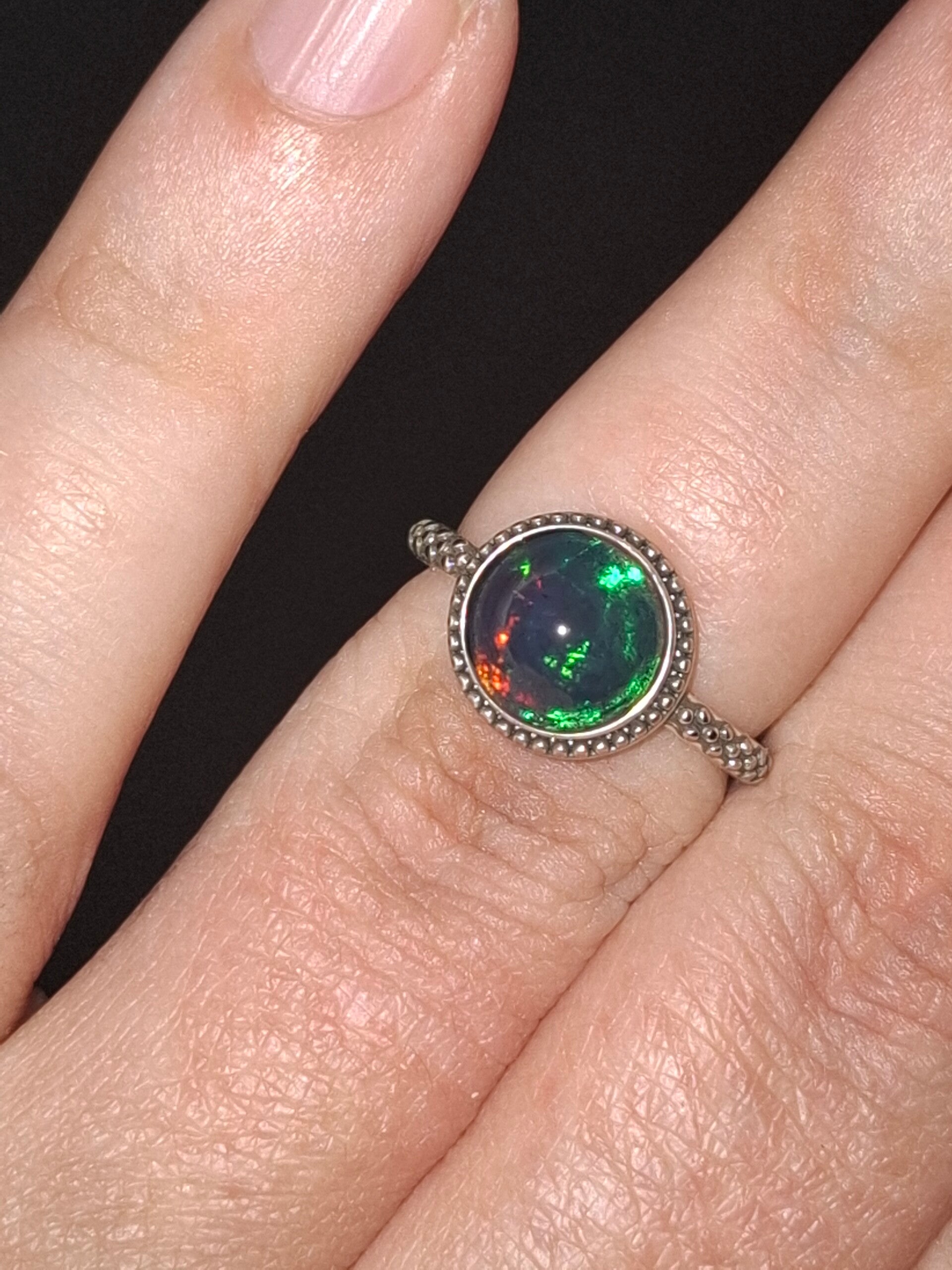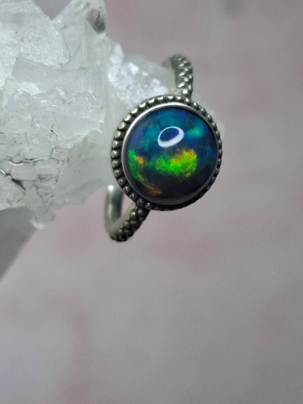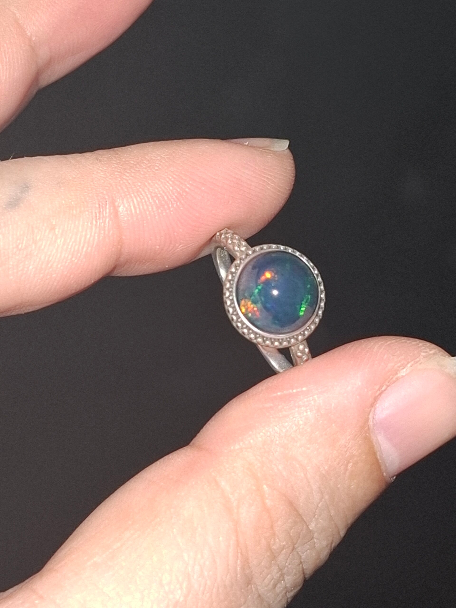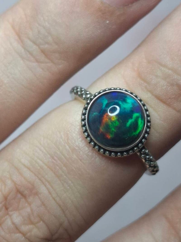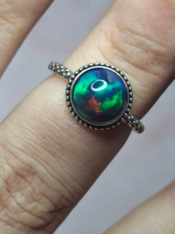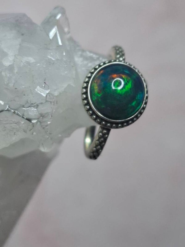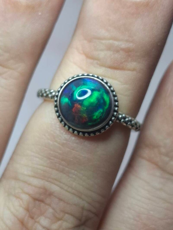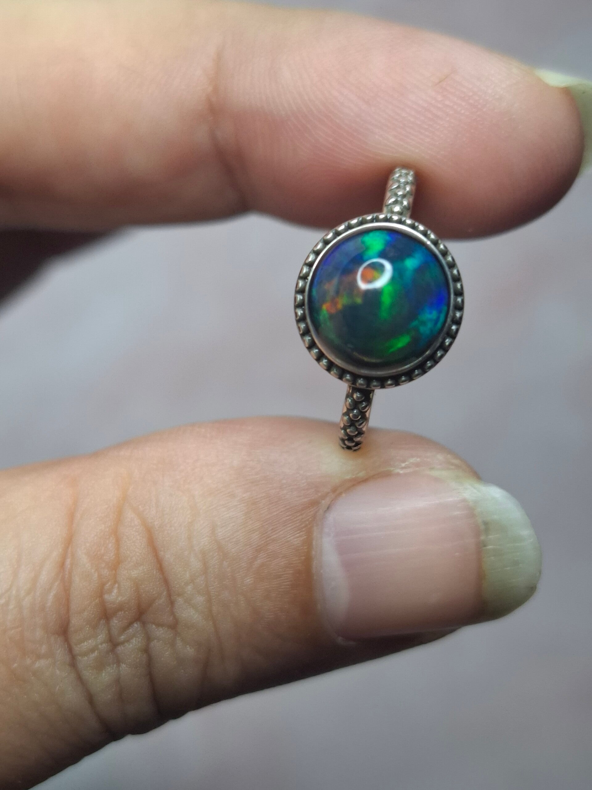 Bague opale 8mm bleuté vert éthiopienne taille 17mm