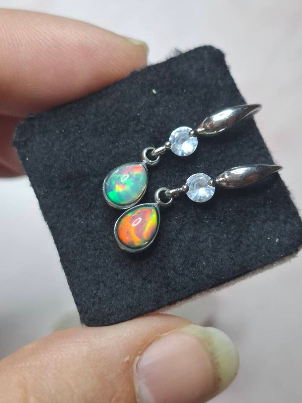 Boucles d'oreilles 2 opales 7x5mm dodue éthiopienne multi 🔥