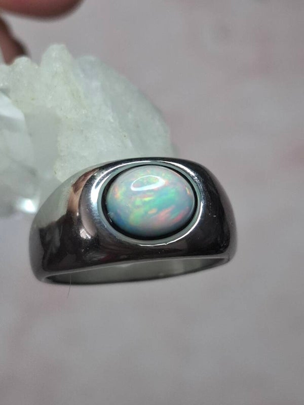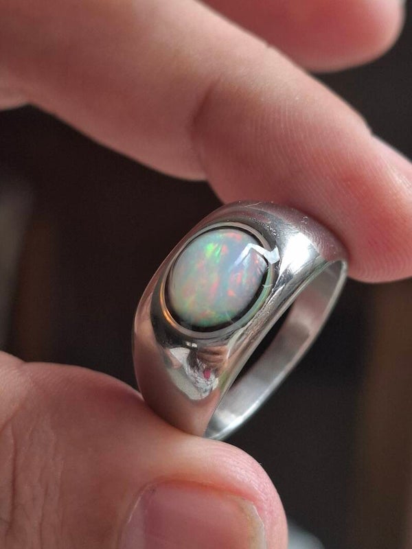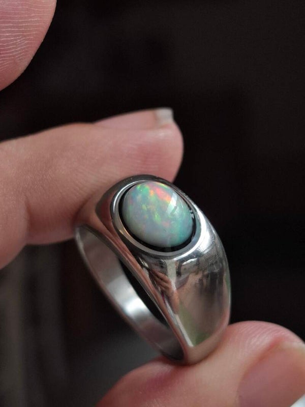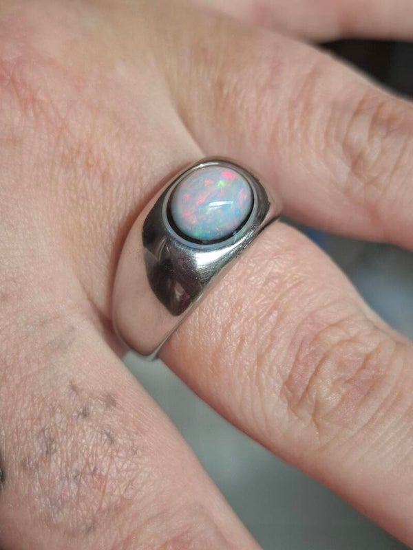 Bague opale, chevalière, opale 9x7mm véritable Naturelle