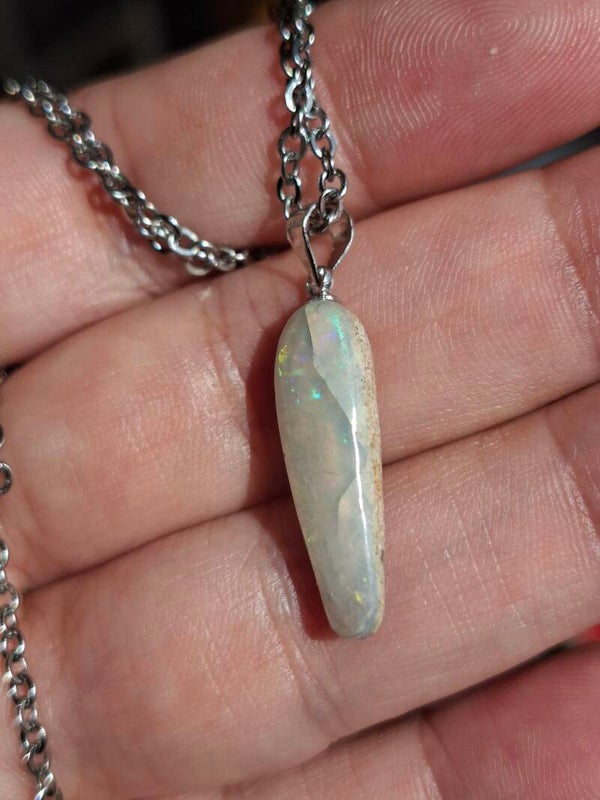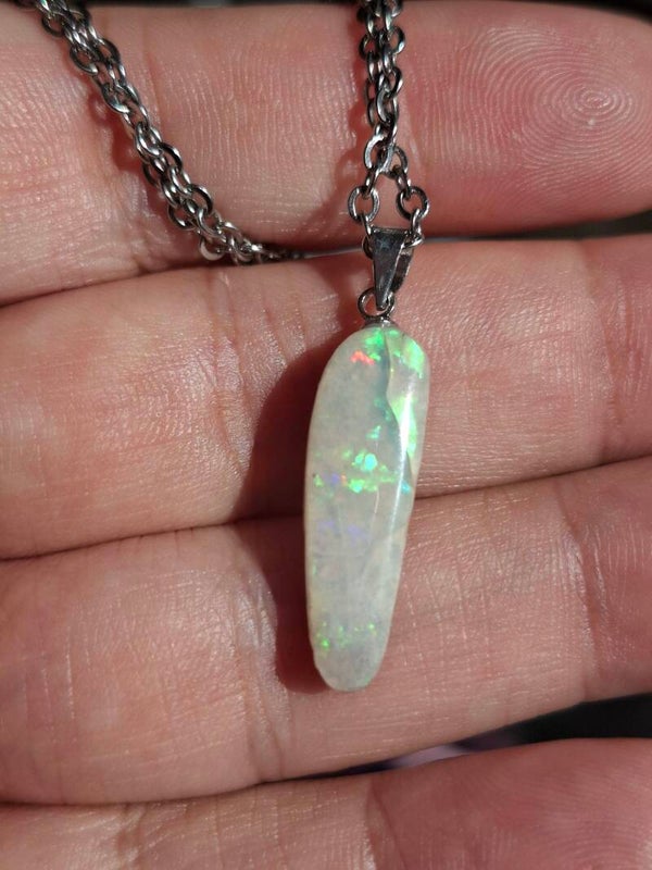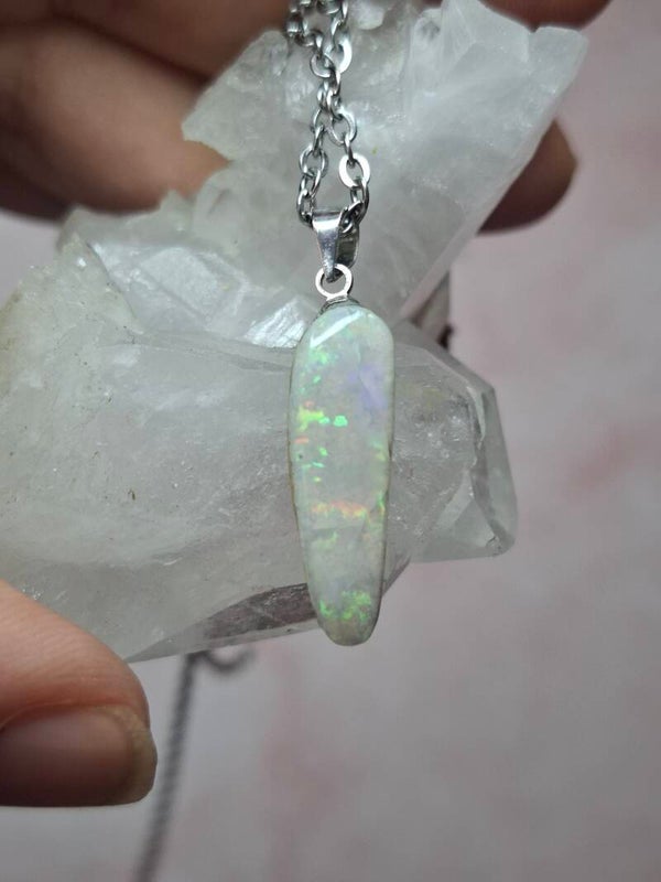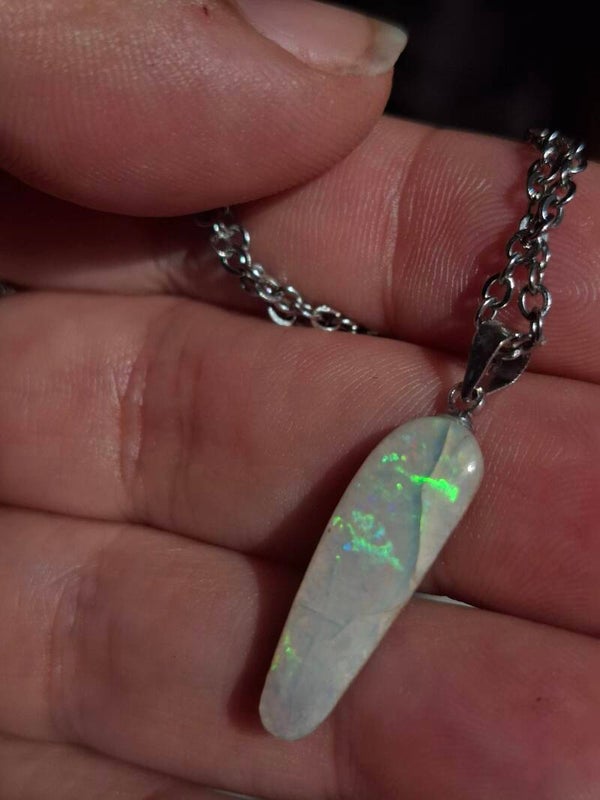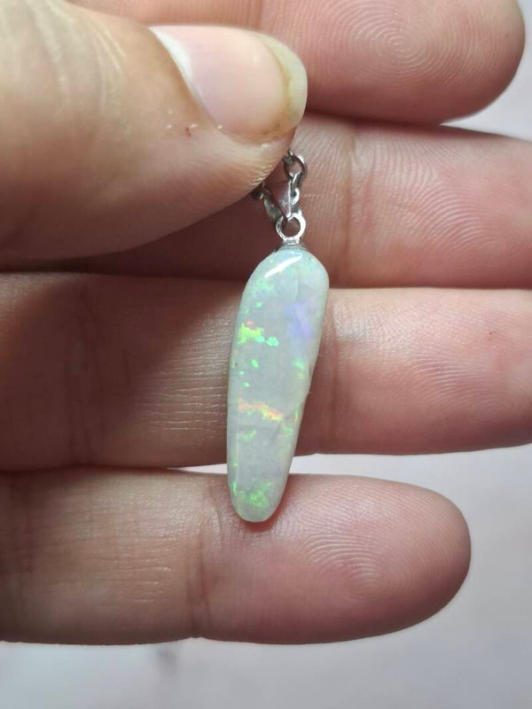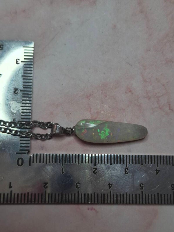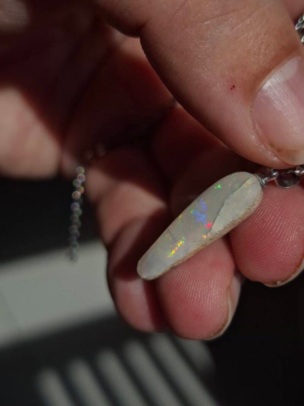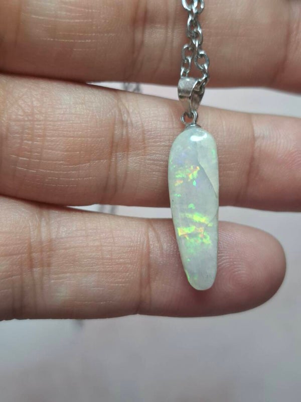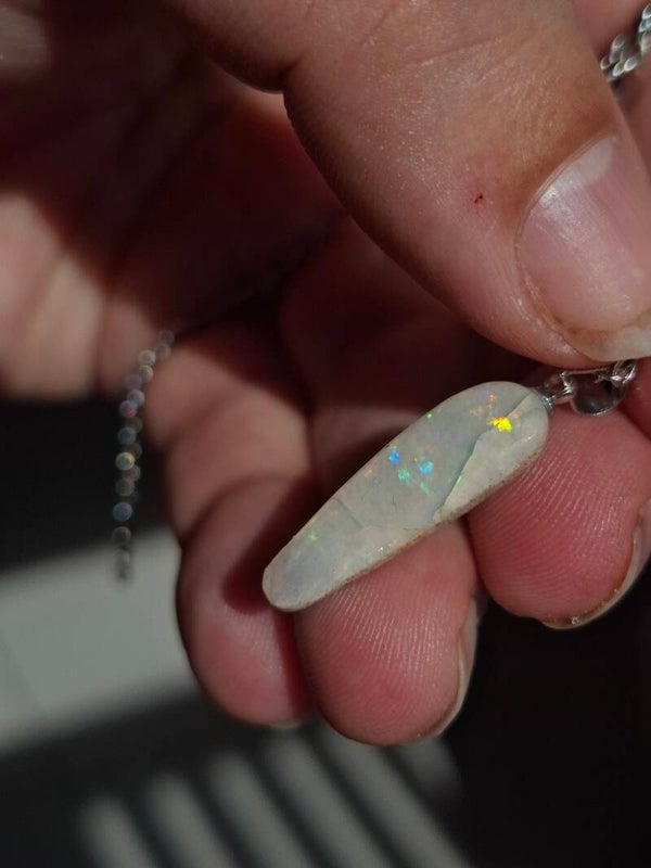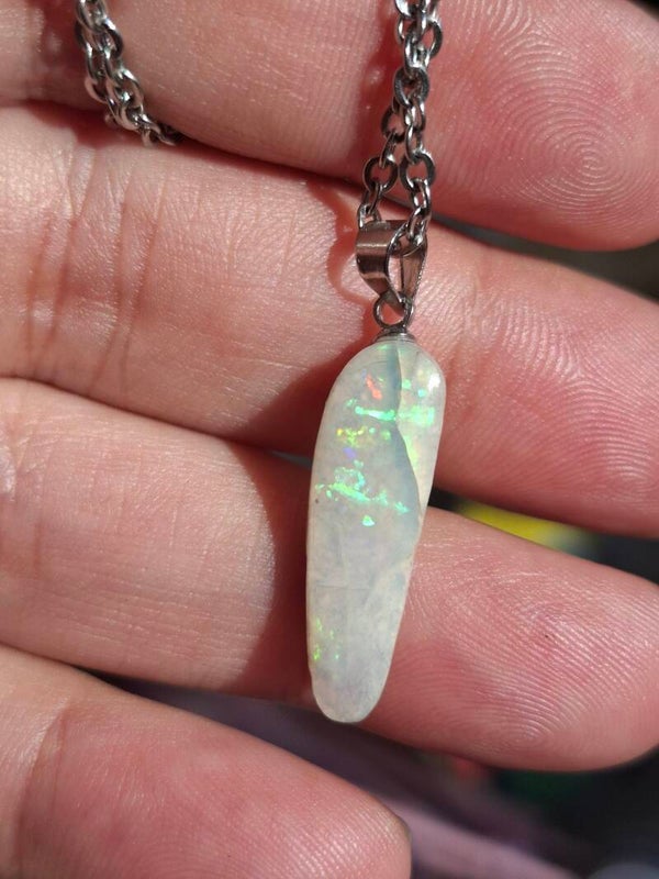 Pendentif collier opale 22x6mm semi brute cristaline australienne véritable