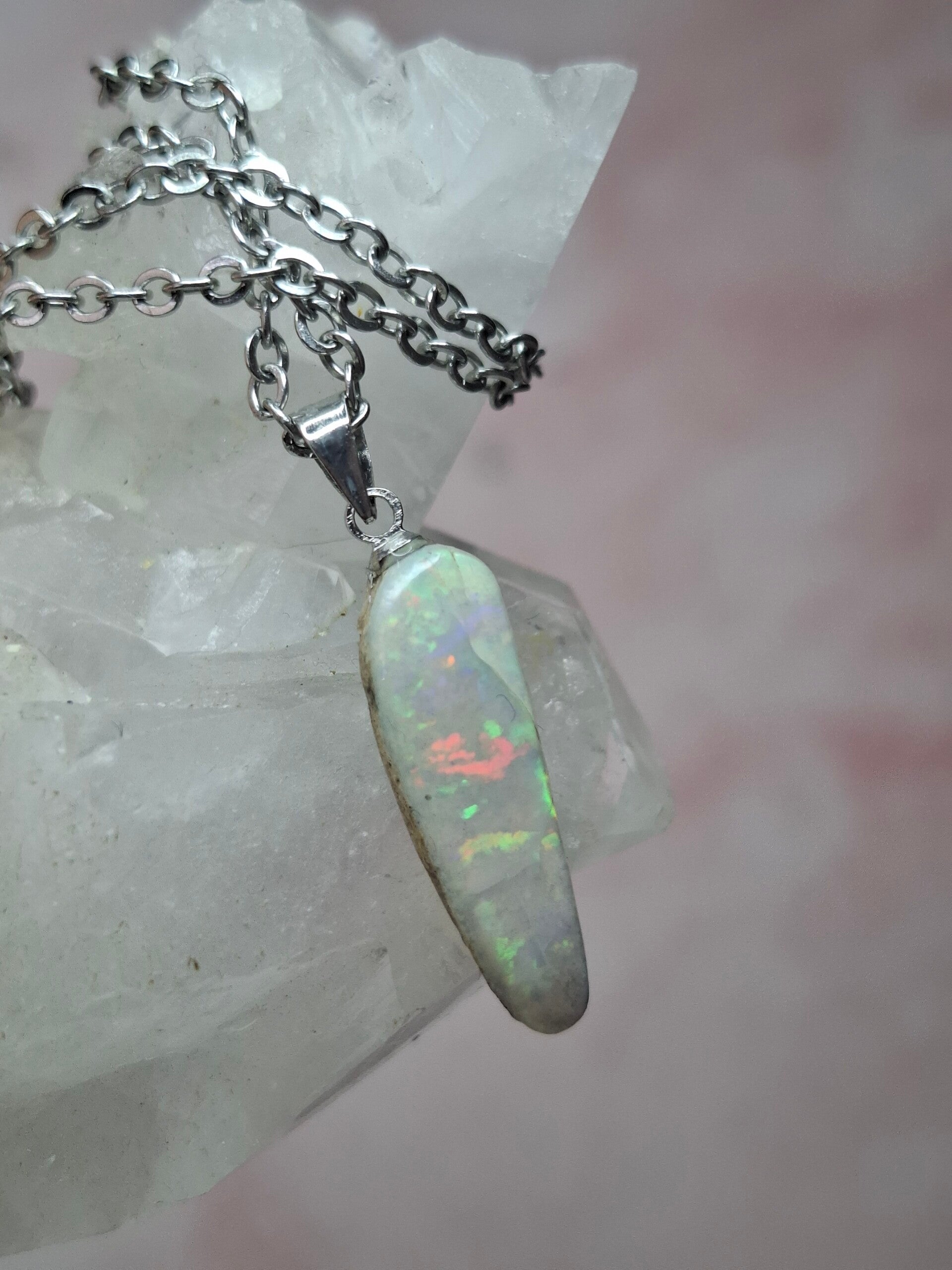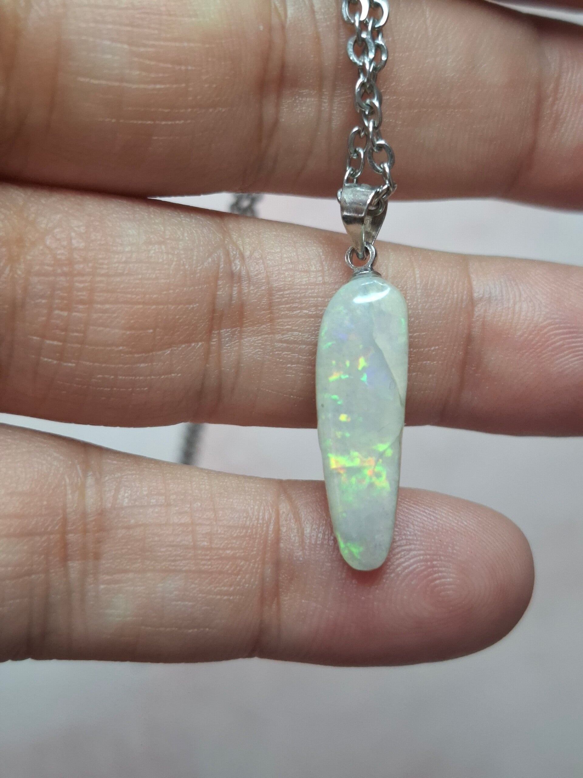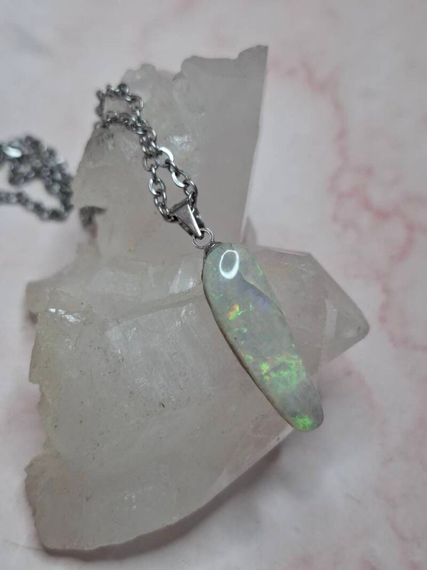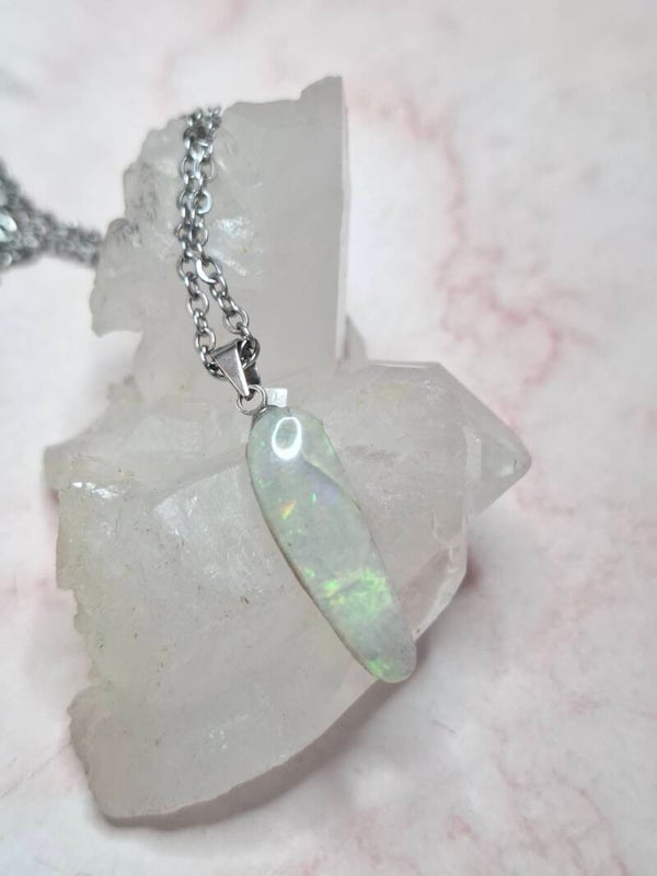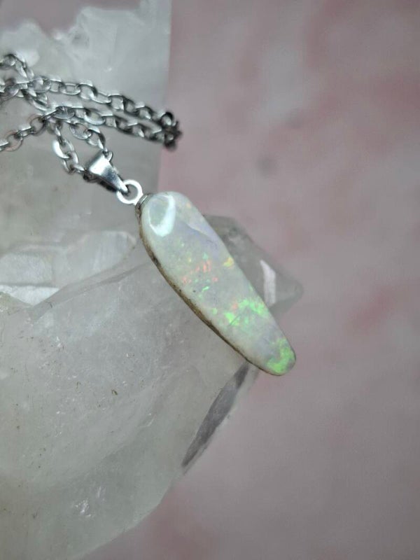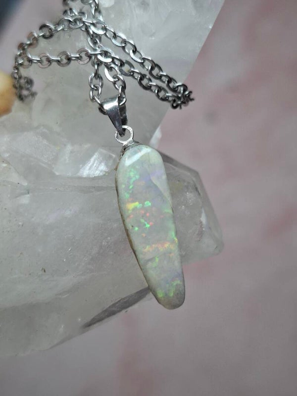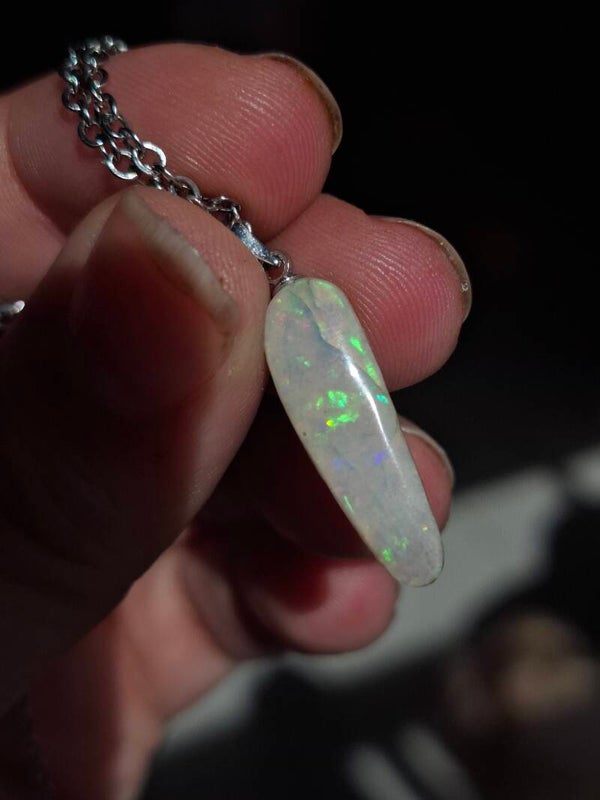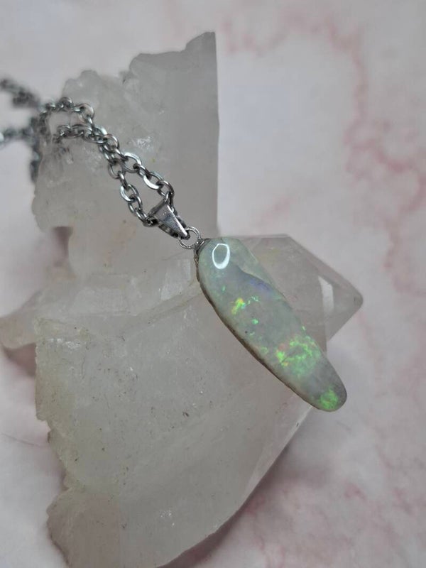 Pendentif collier opale 22x6mm semi brute cristaline australienne véritable