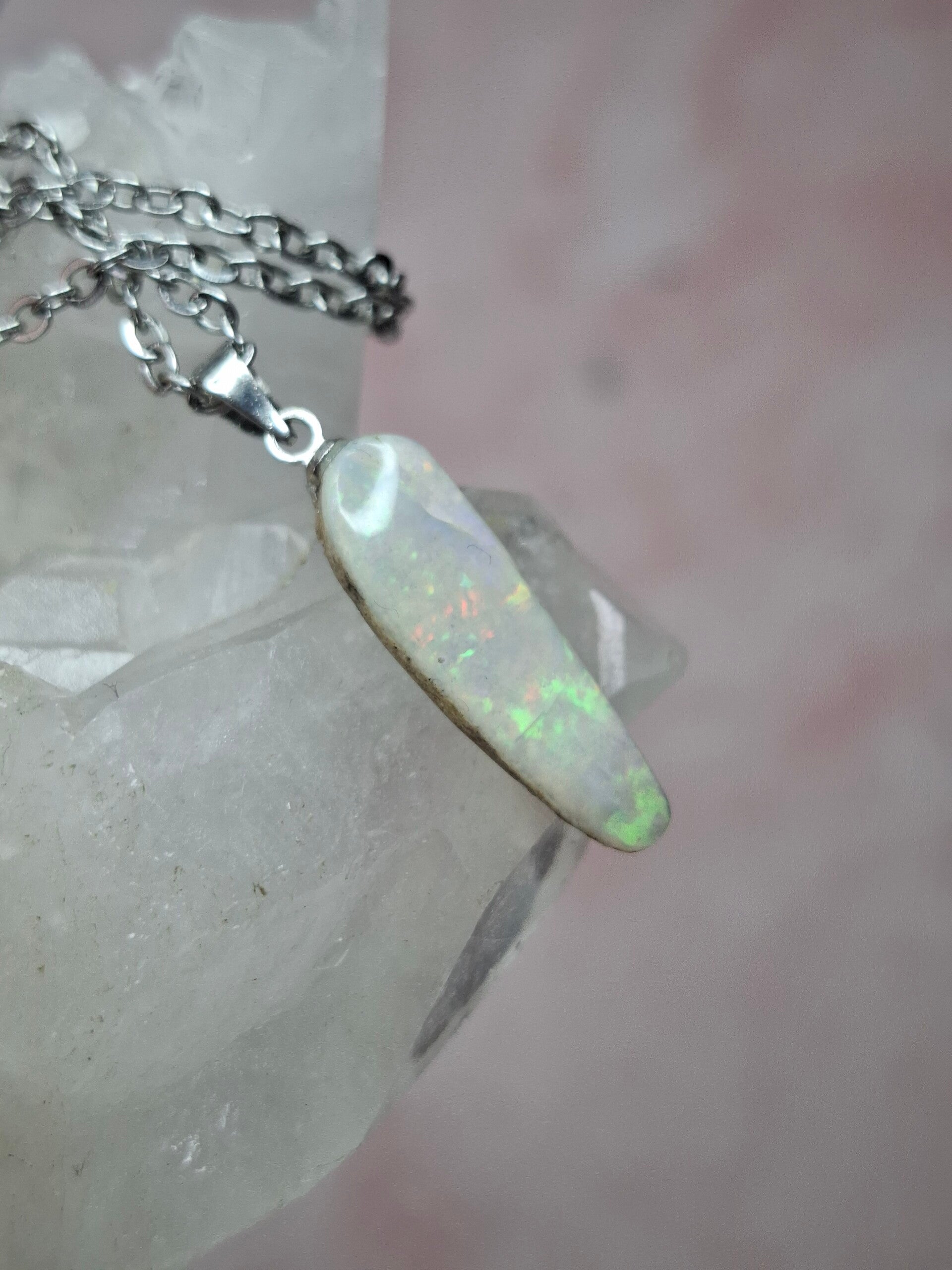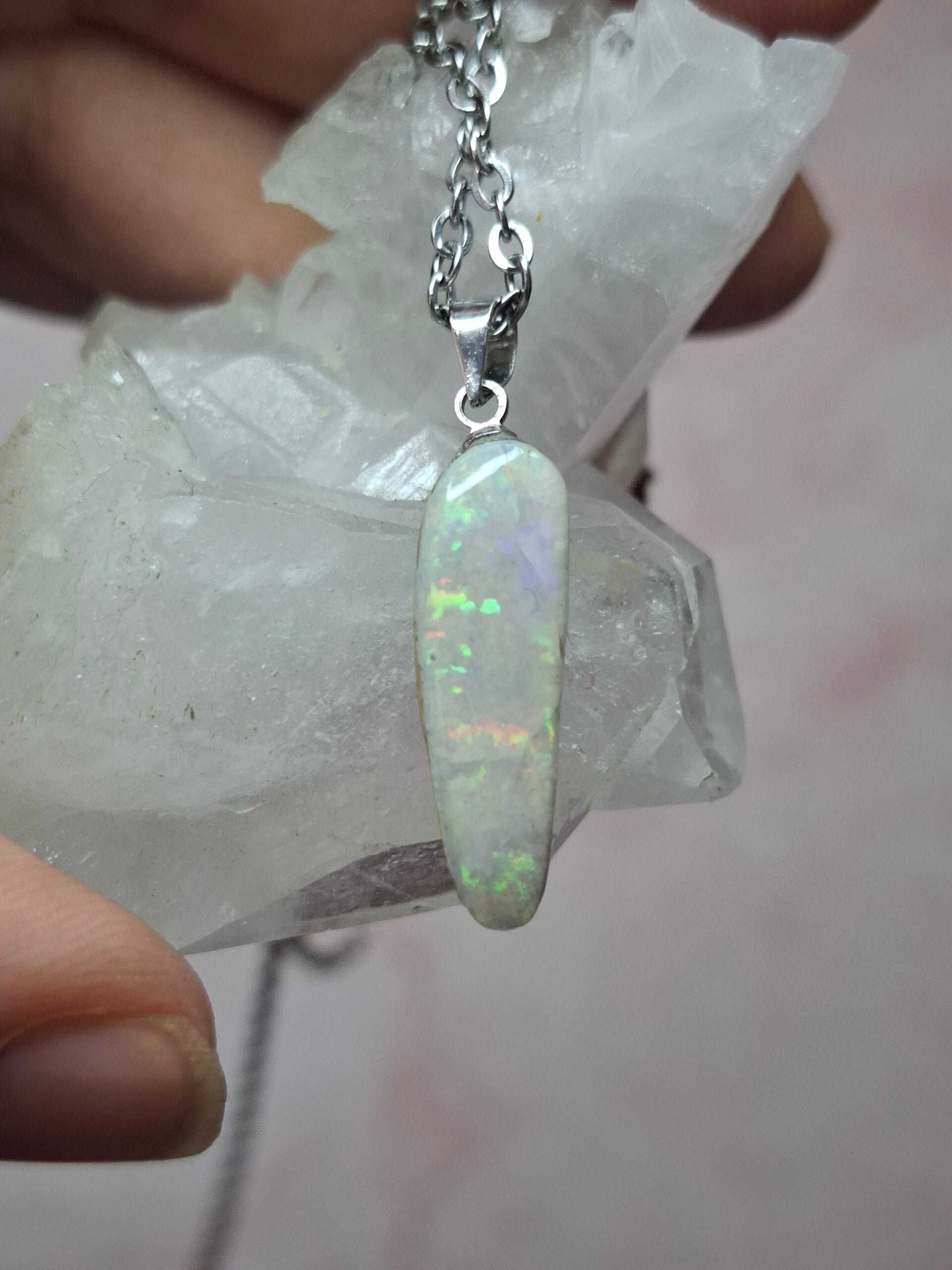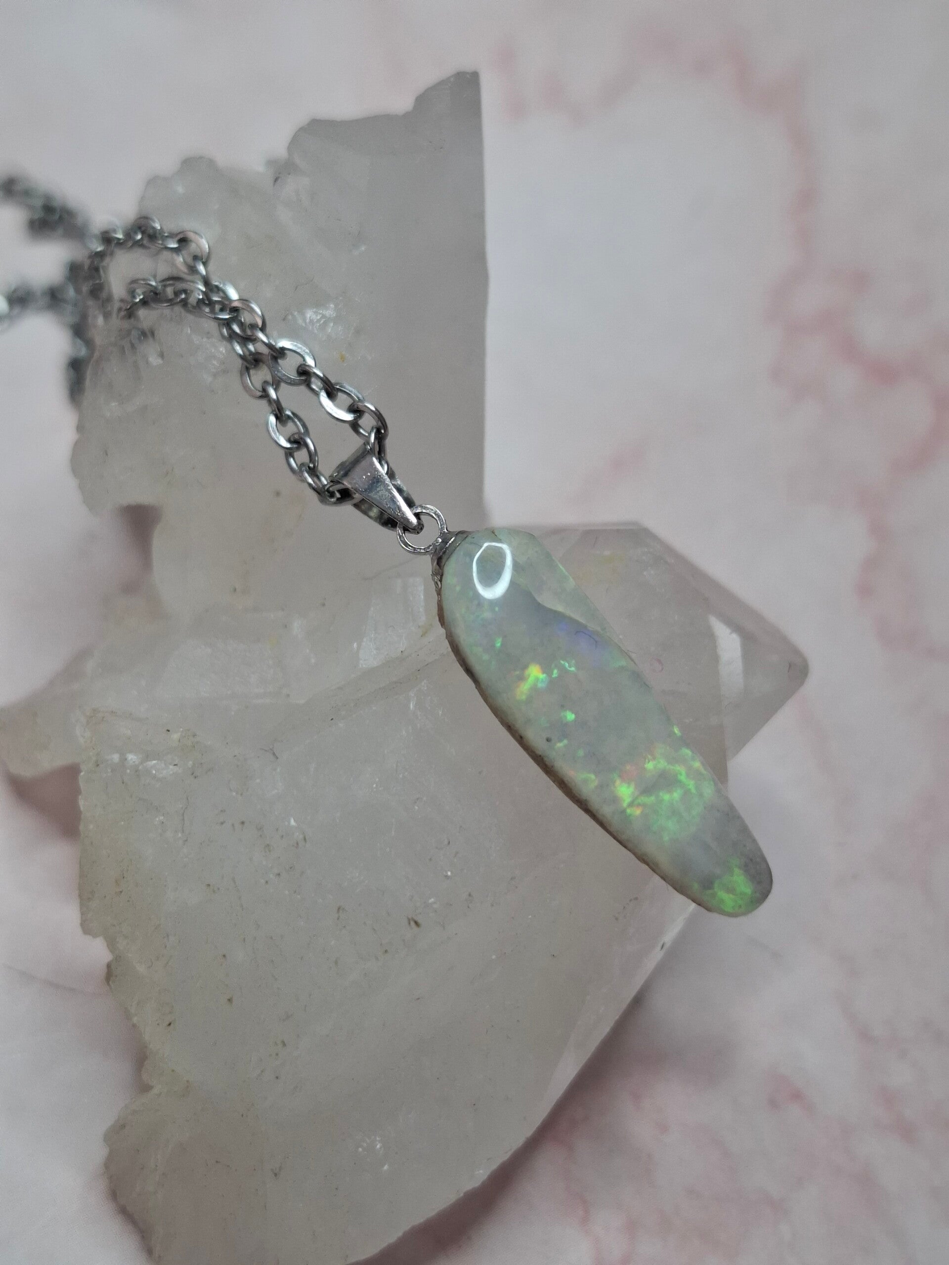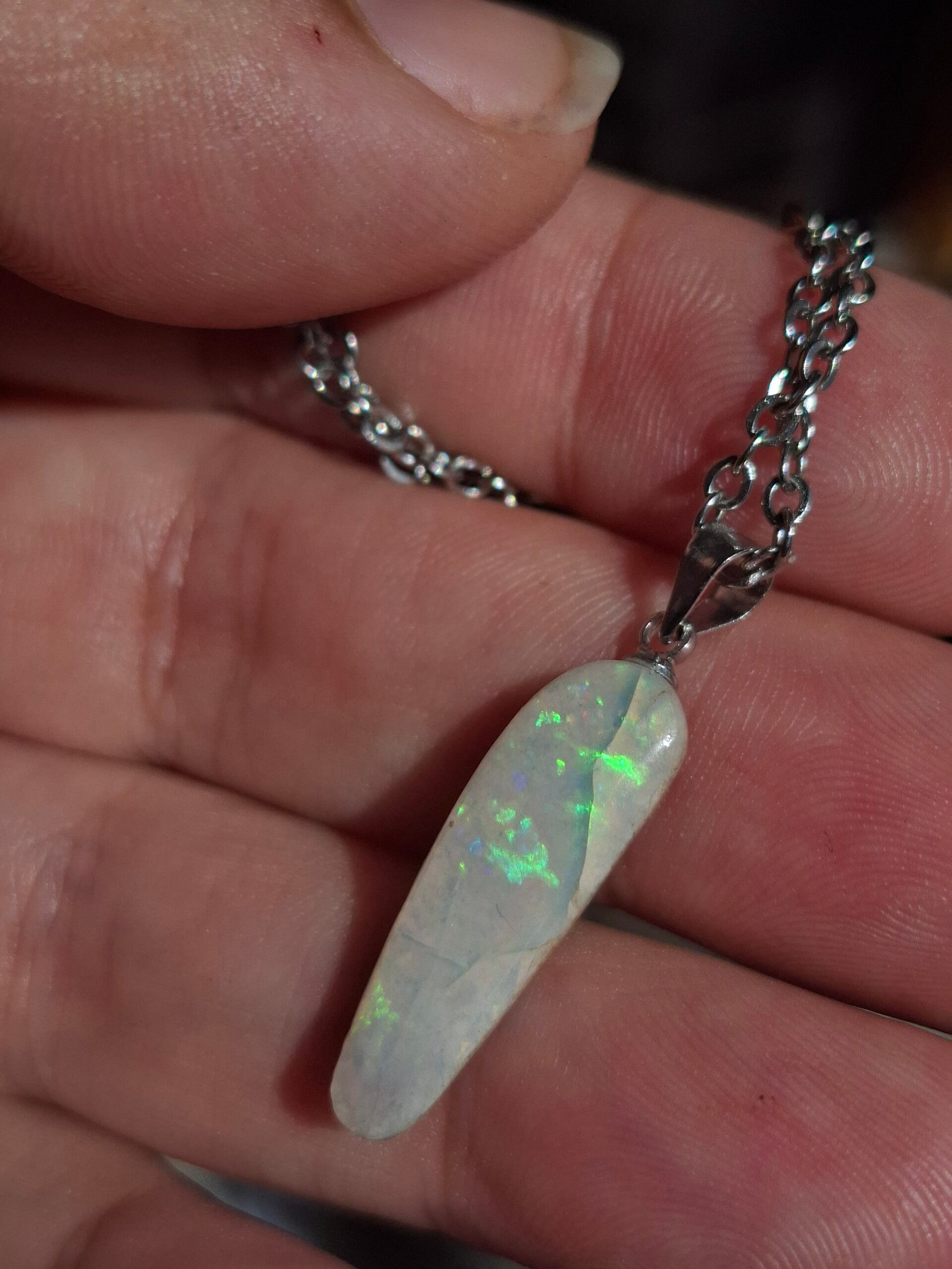 Pendentif collier opale 22x6mm semi brute cristaline australienne véritable