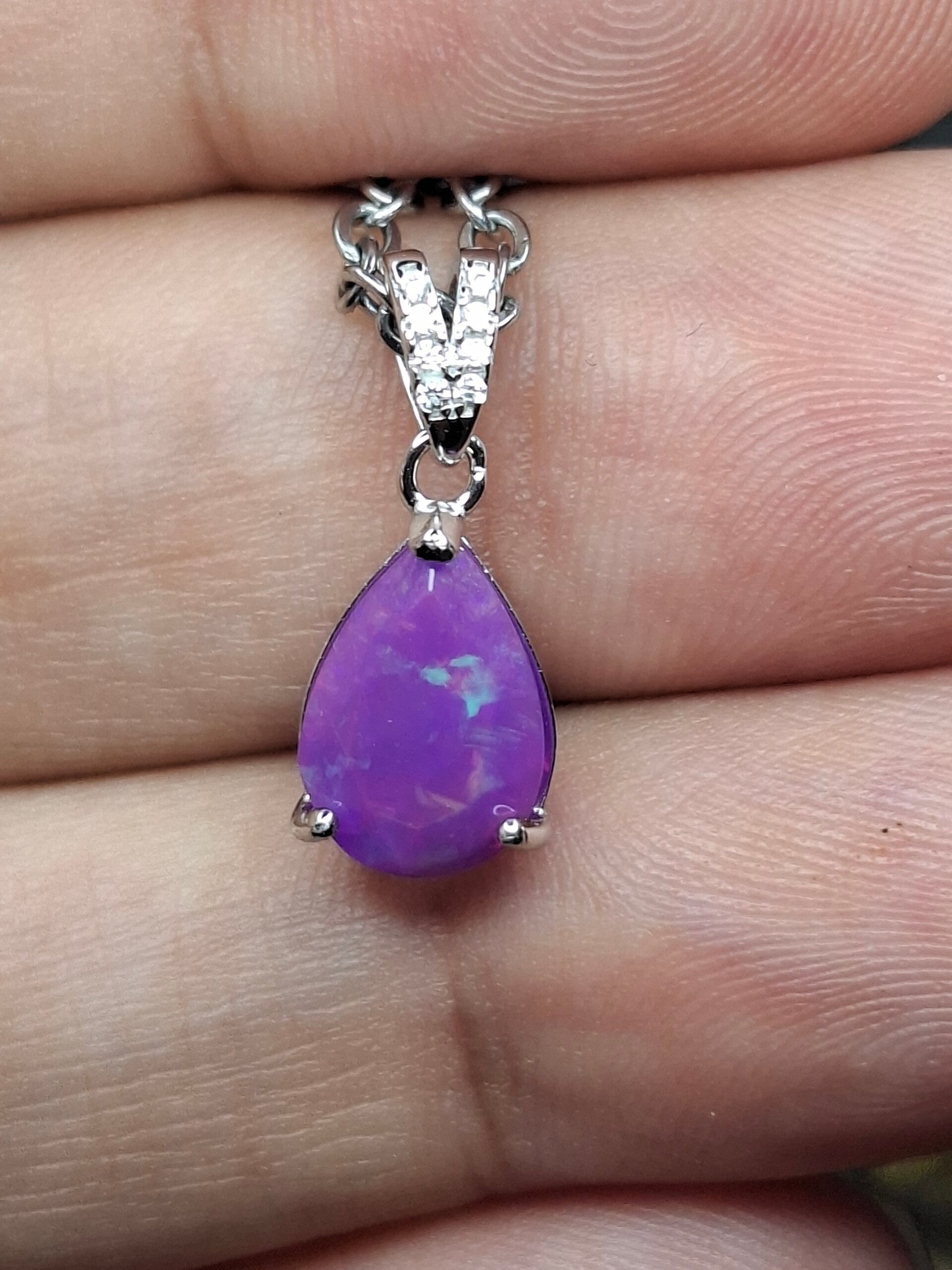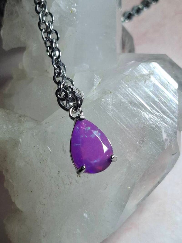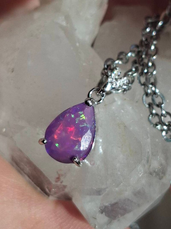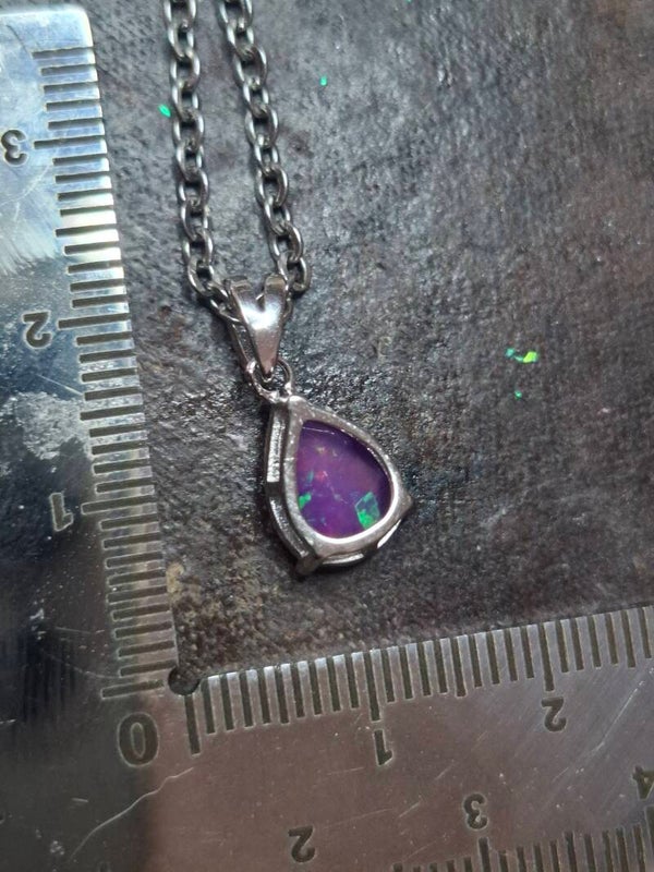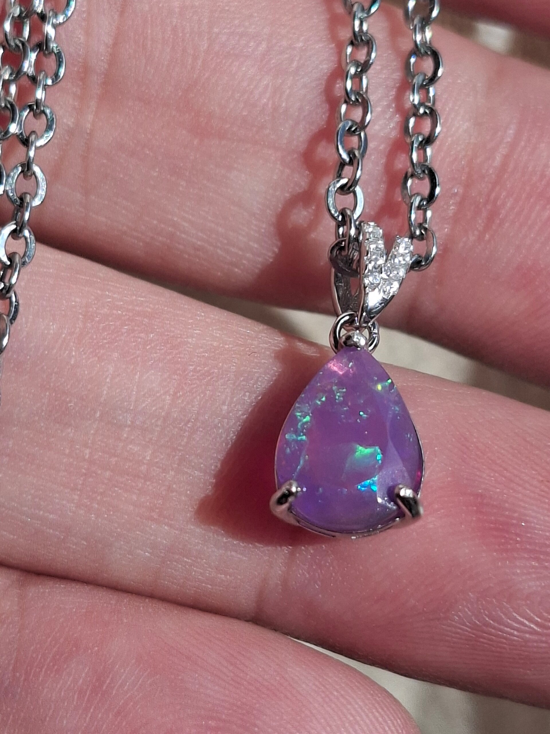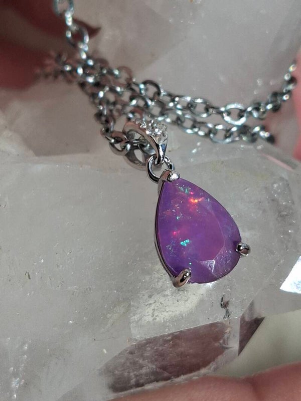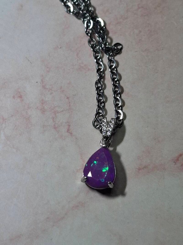 Neuf. Pendentif s925 zircon avec opale facetté goutte mauve reflet multicolore