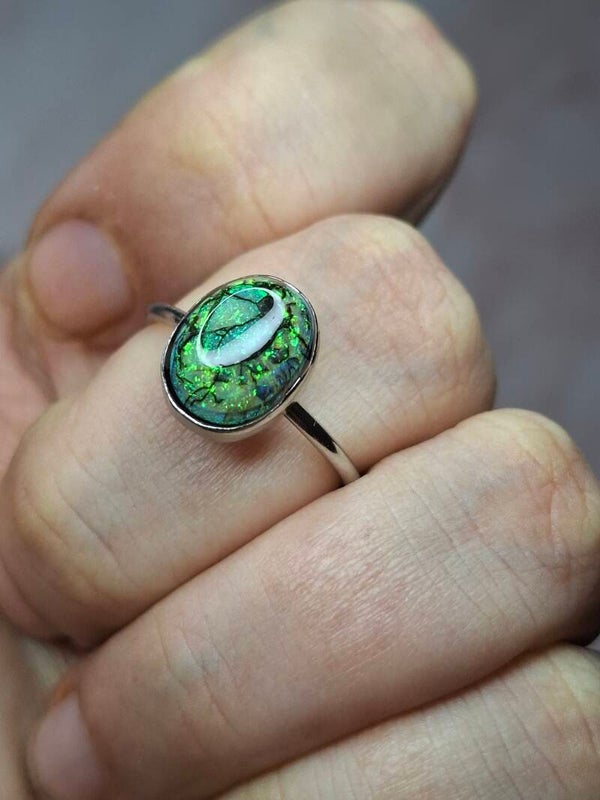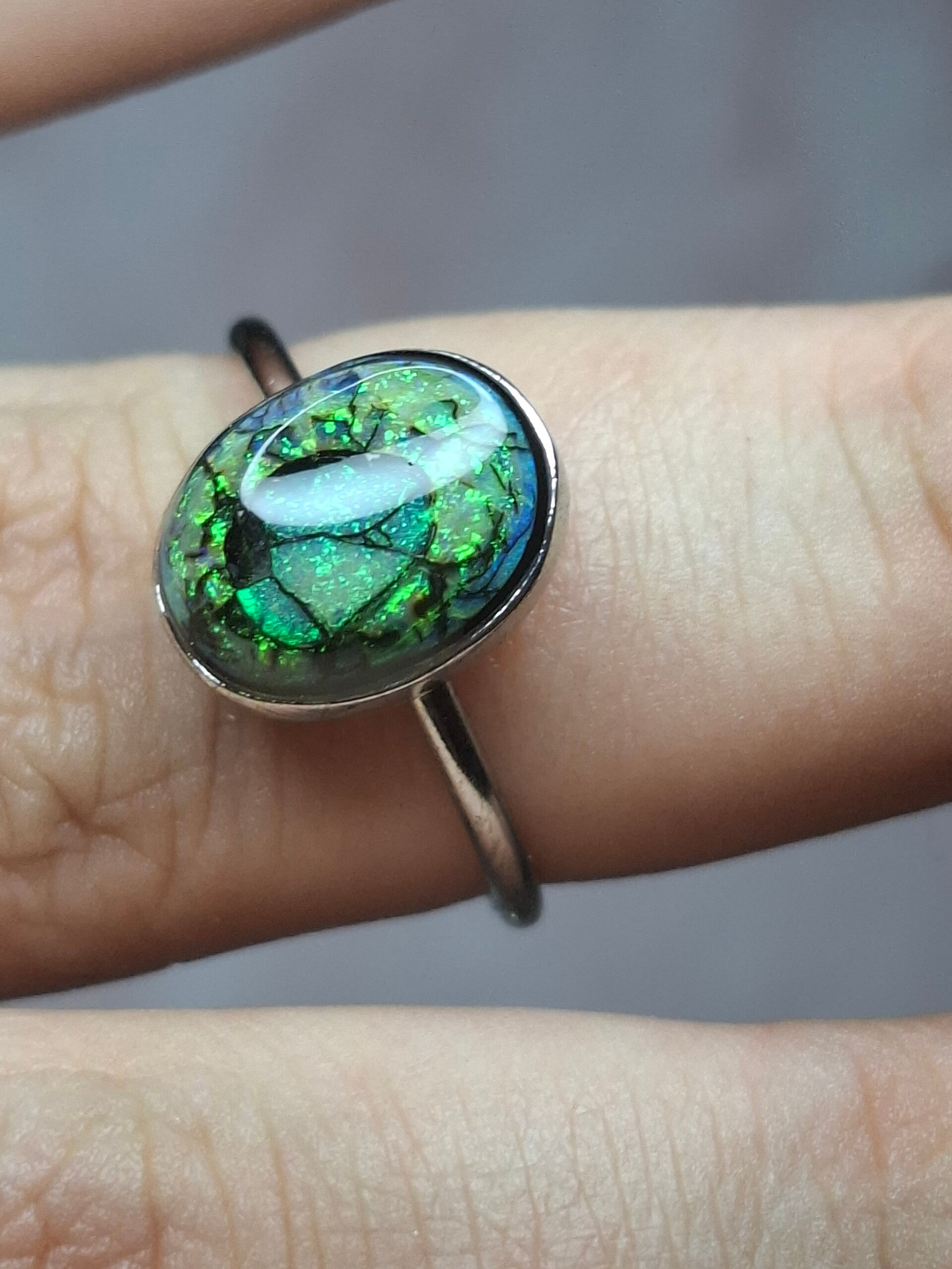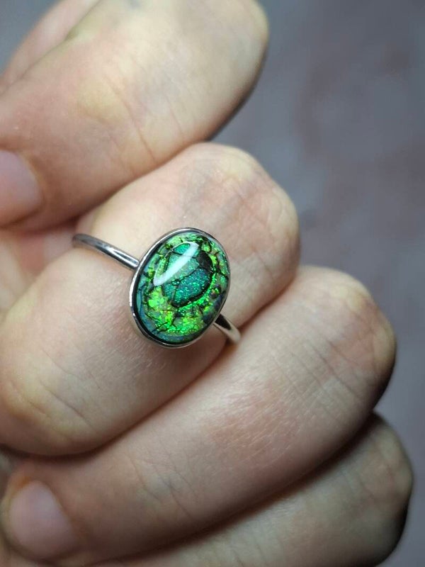 Bague opale 10x8mm. Opale monarch neuf. Taille ajustable, neuf