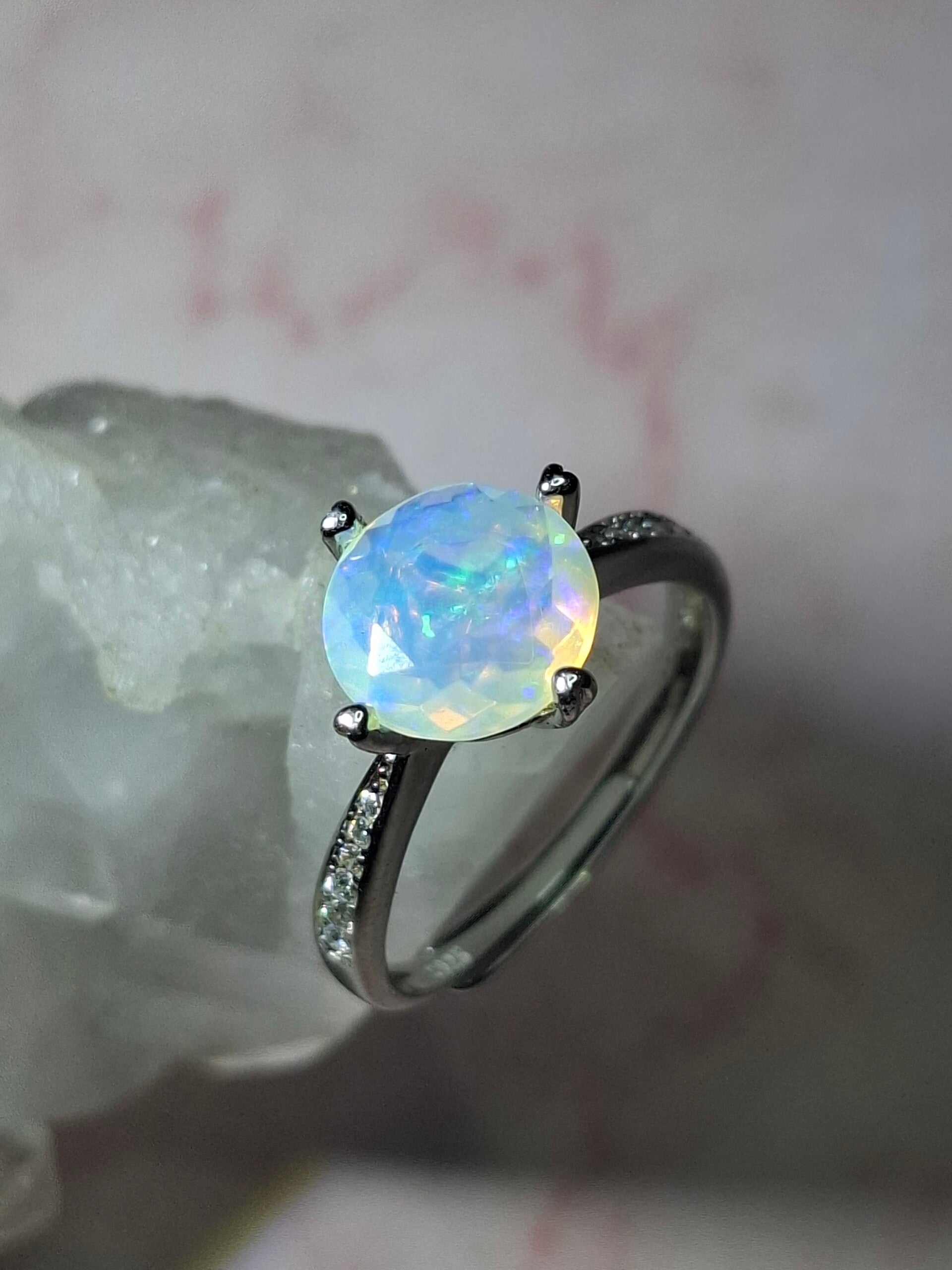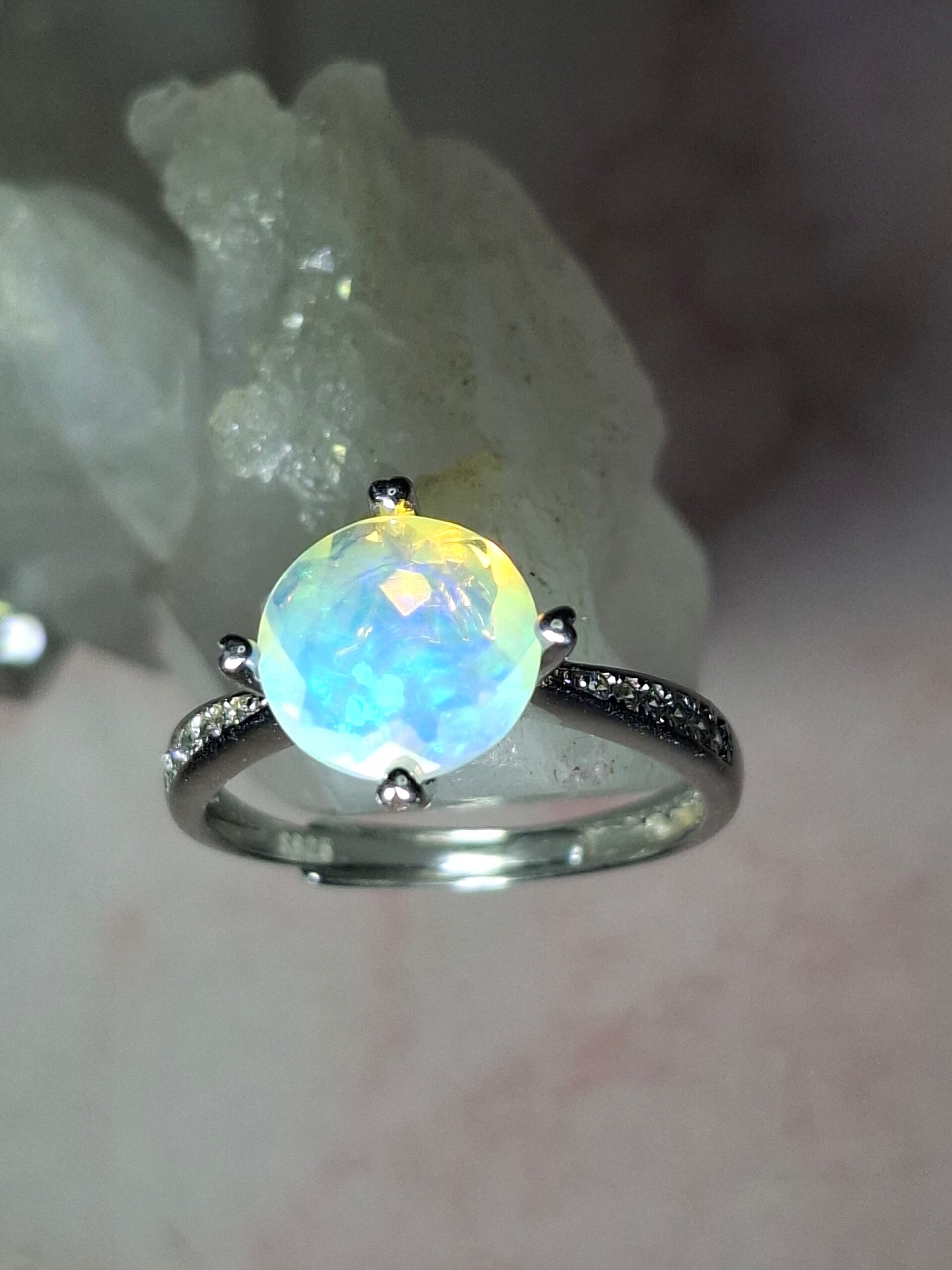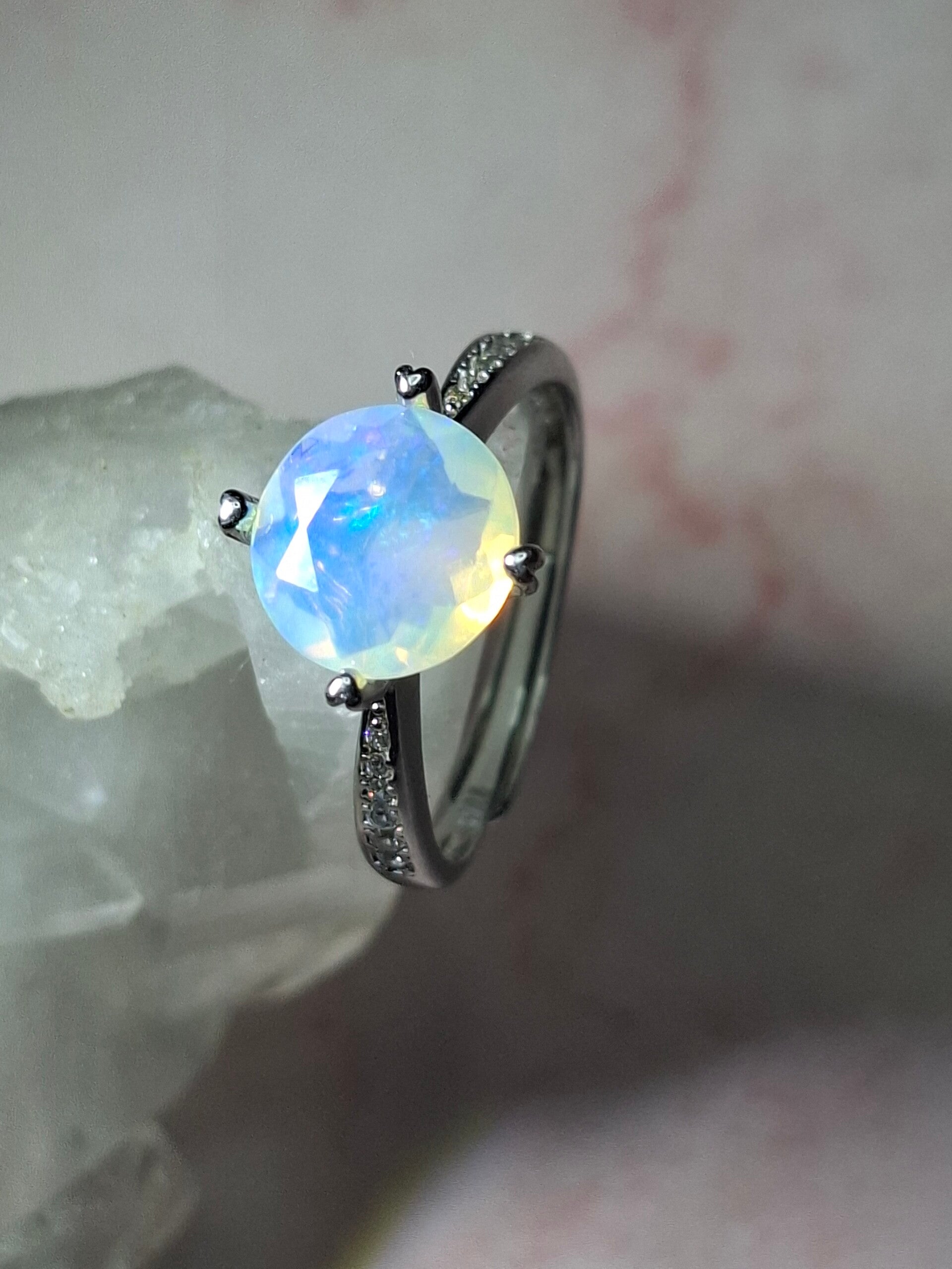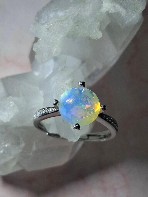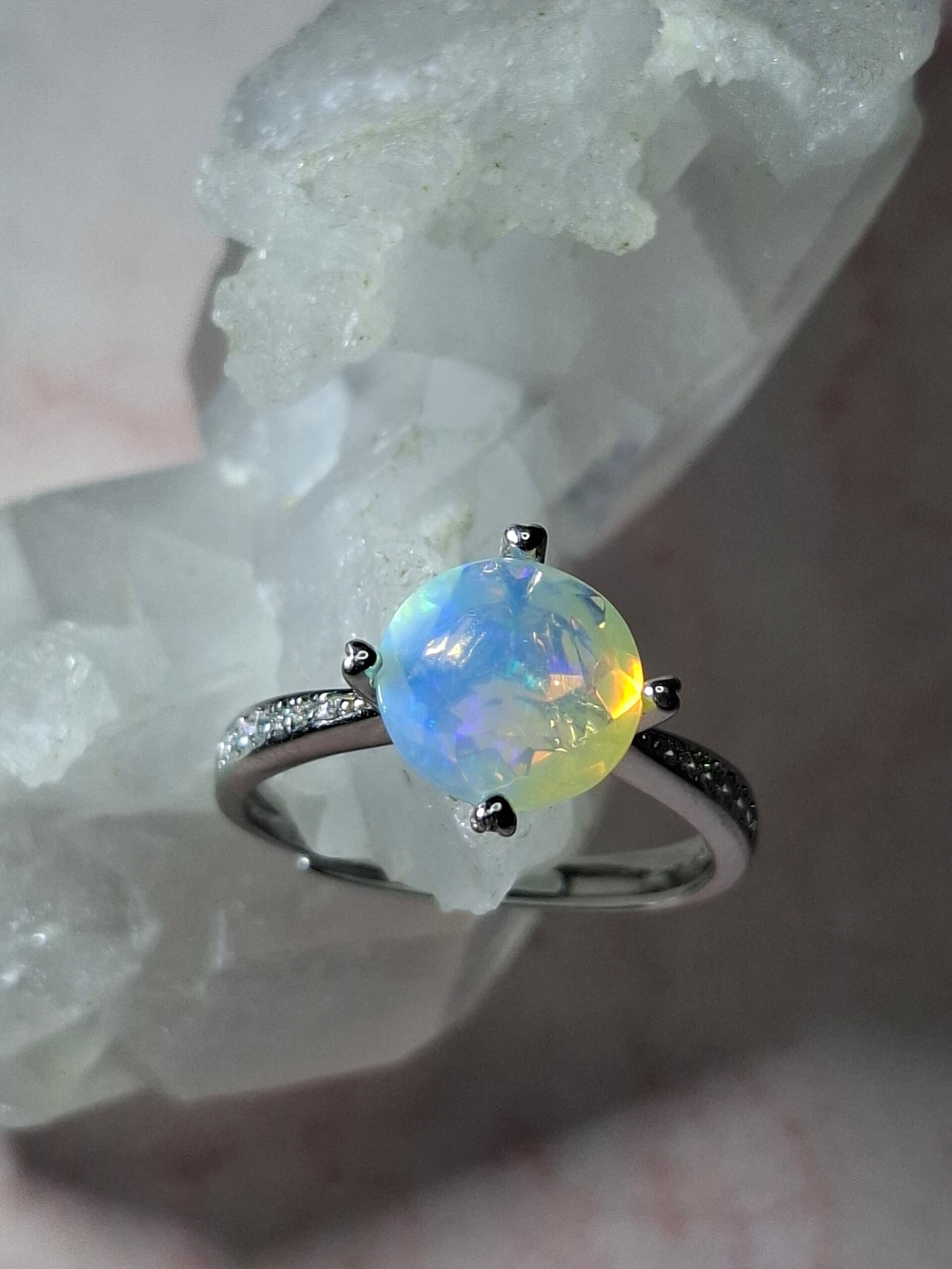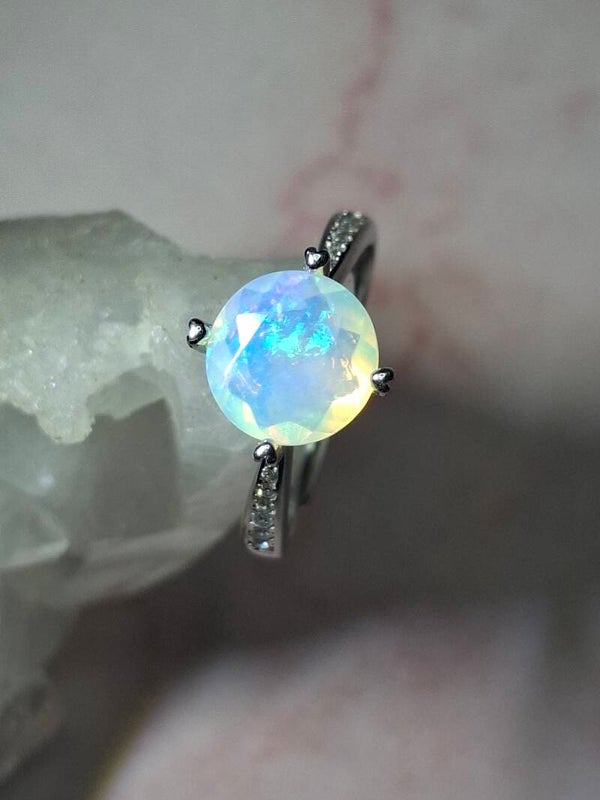 Bague solitaire opale, pierre véritable 9mm de 1,30 carats naturelle