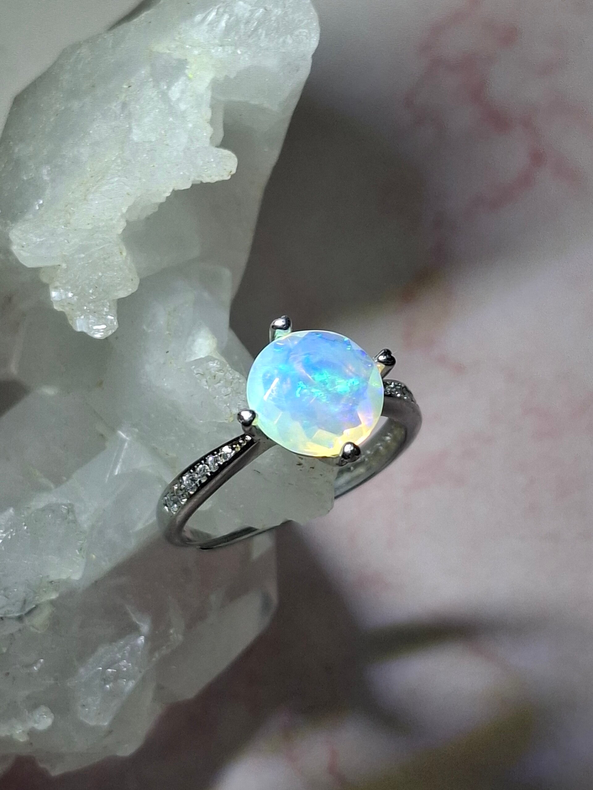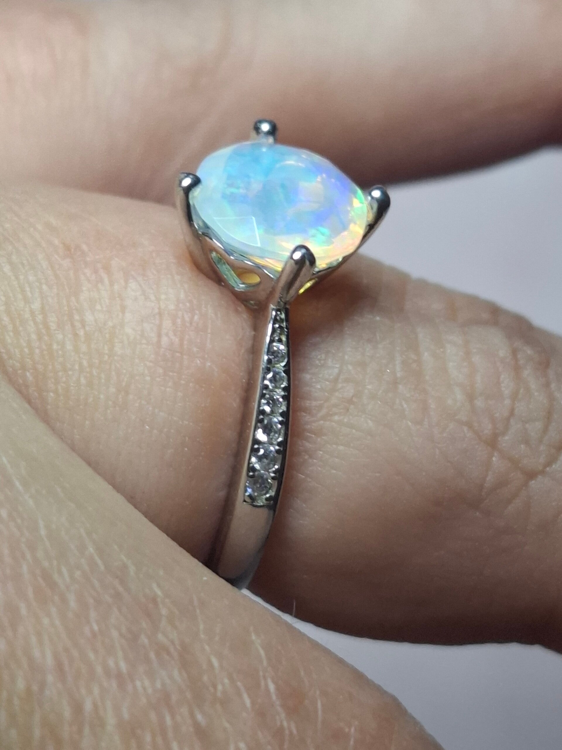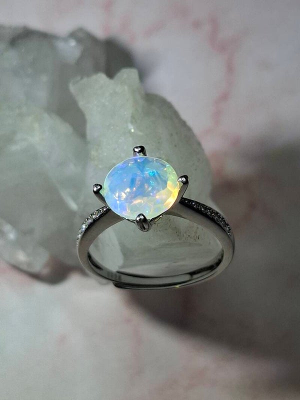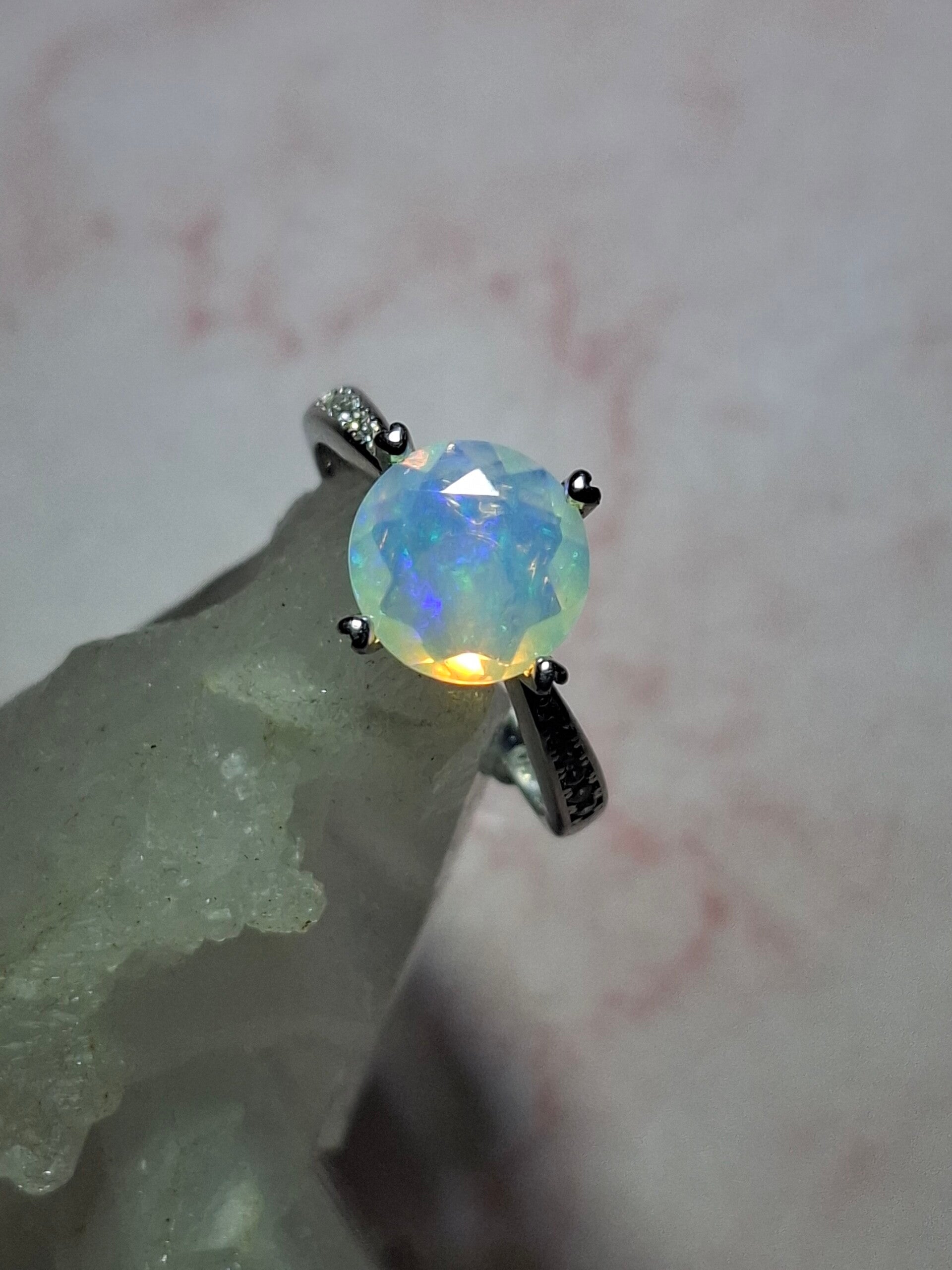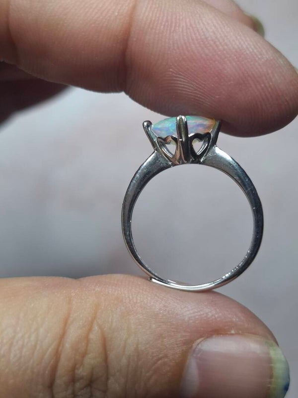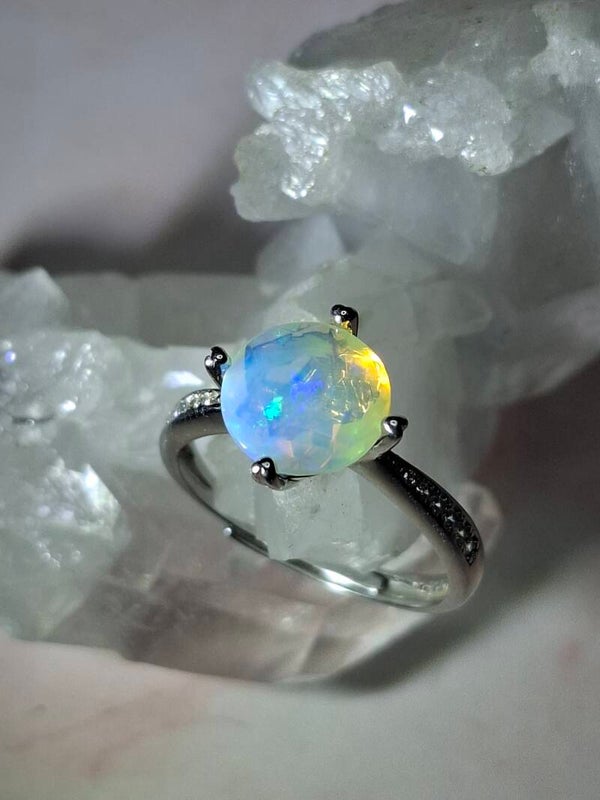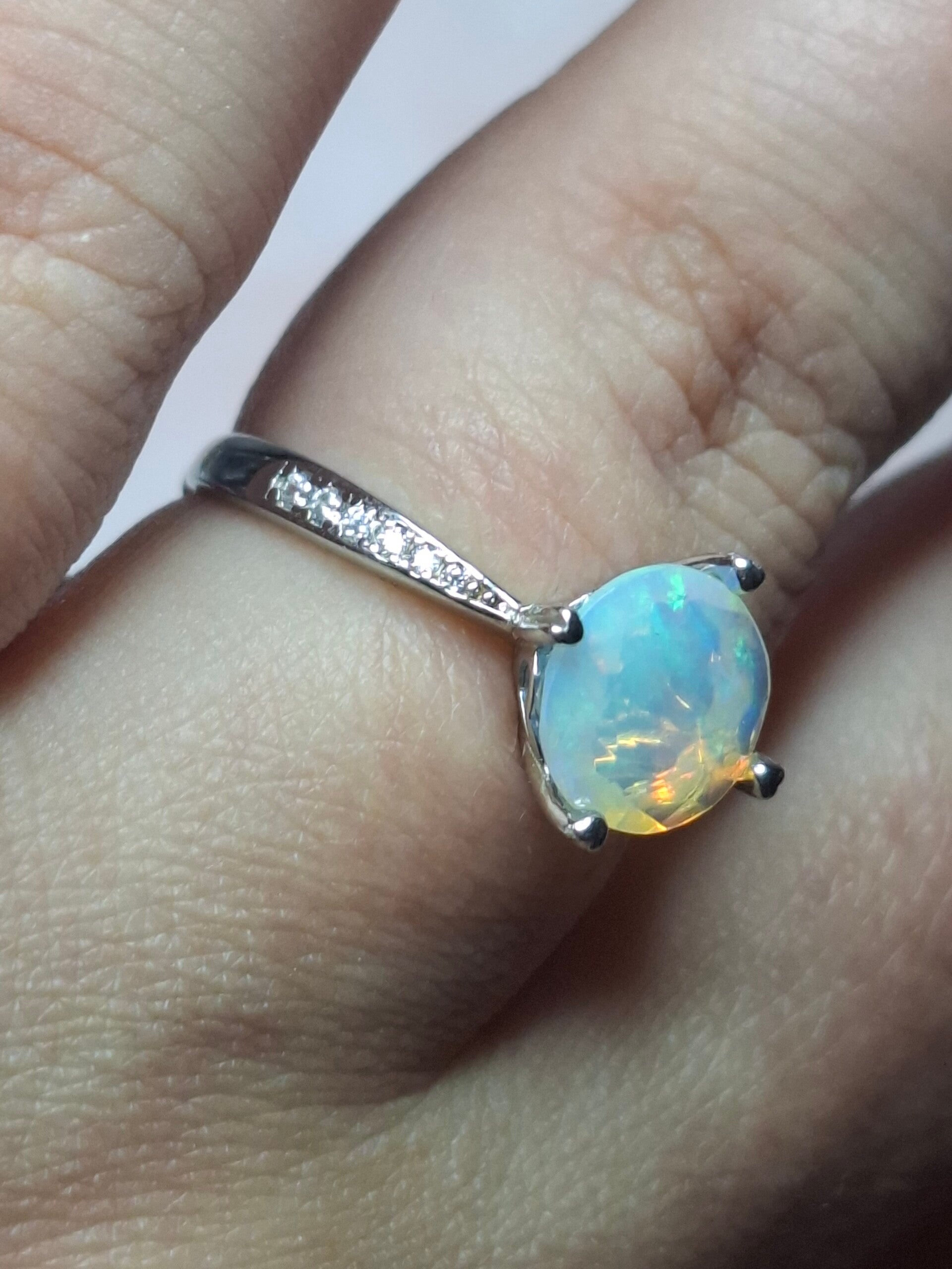 Bague solitaire opale, pierre véritable 9mm de 1,30 carats naturelle