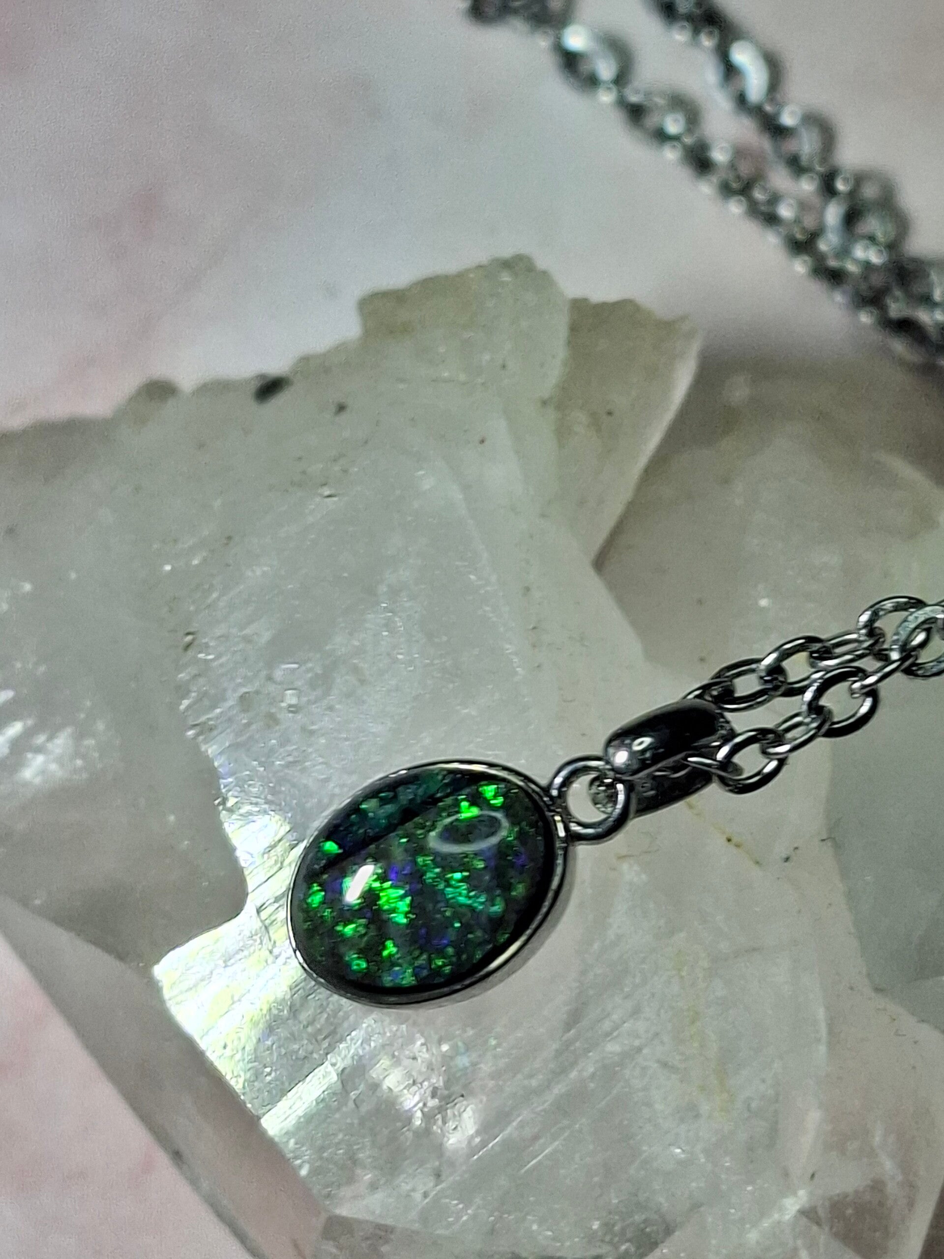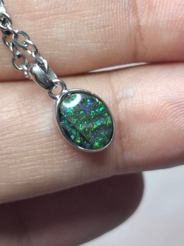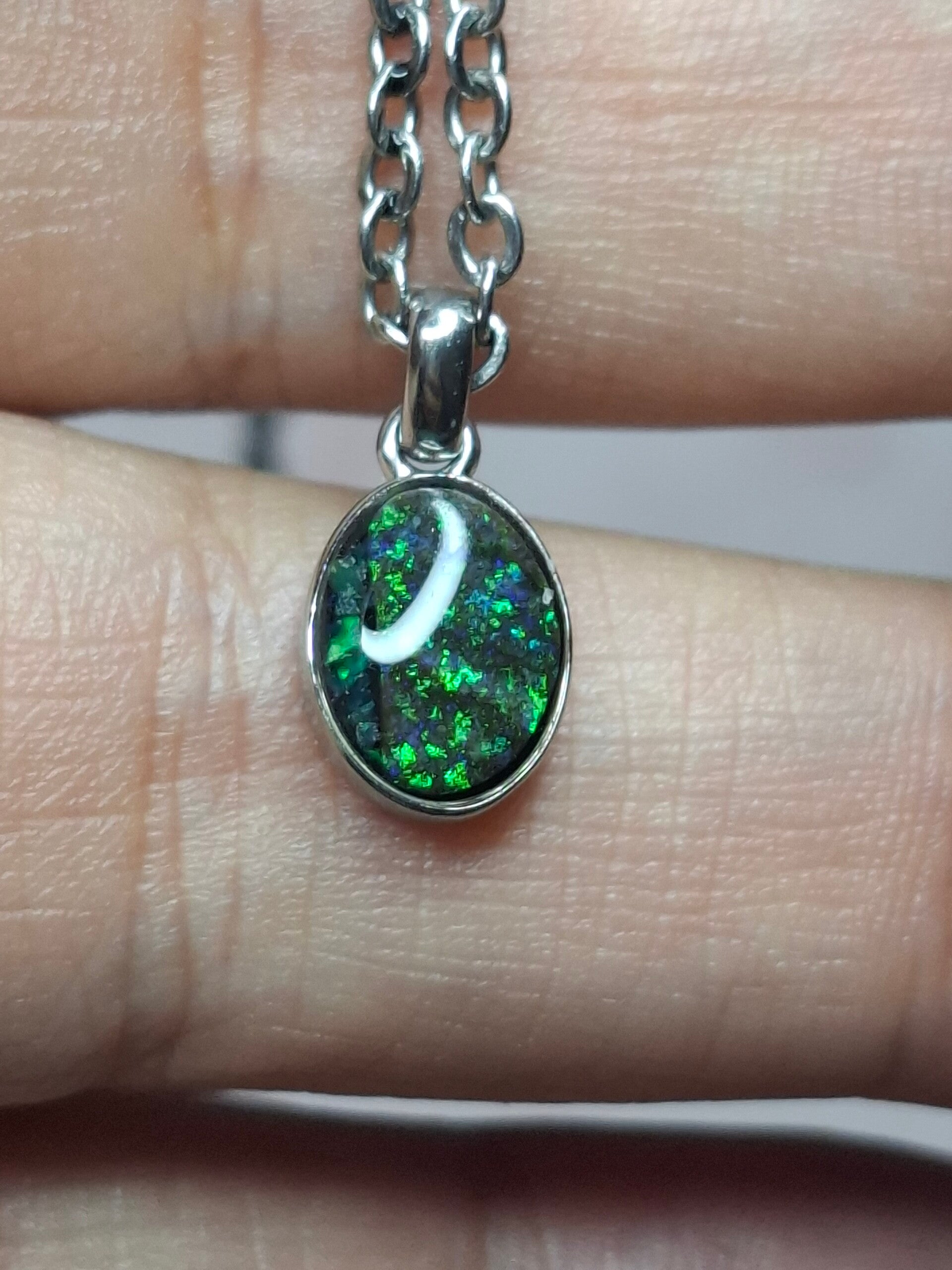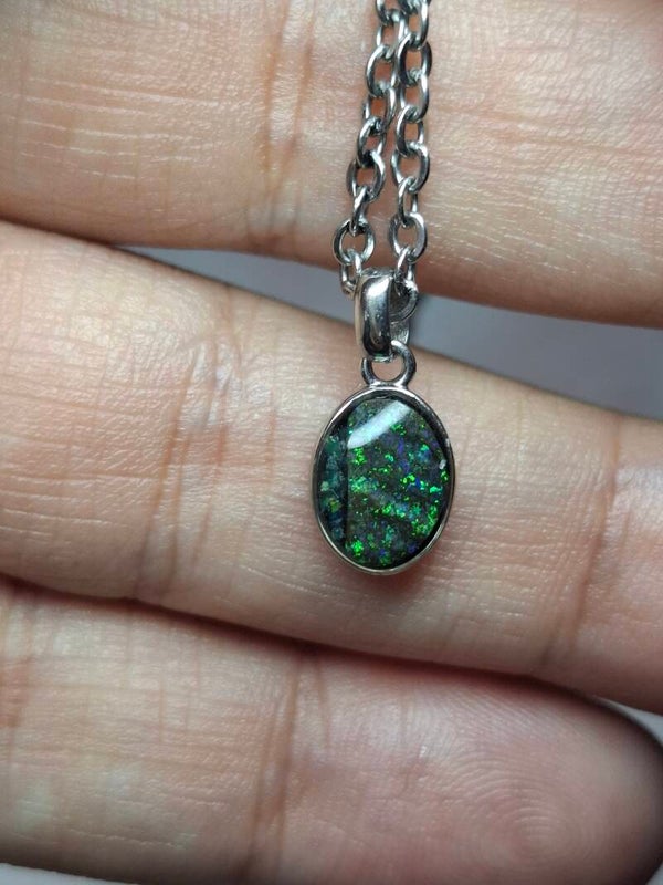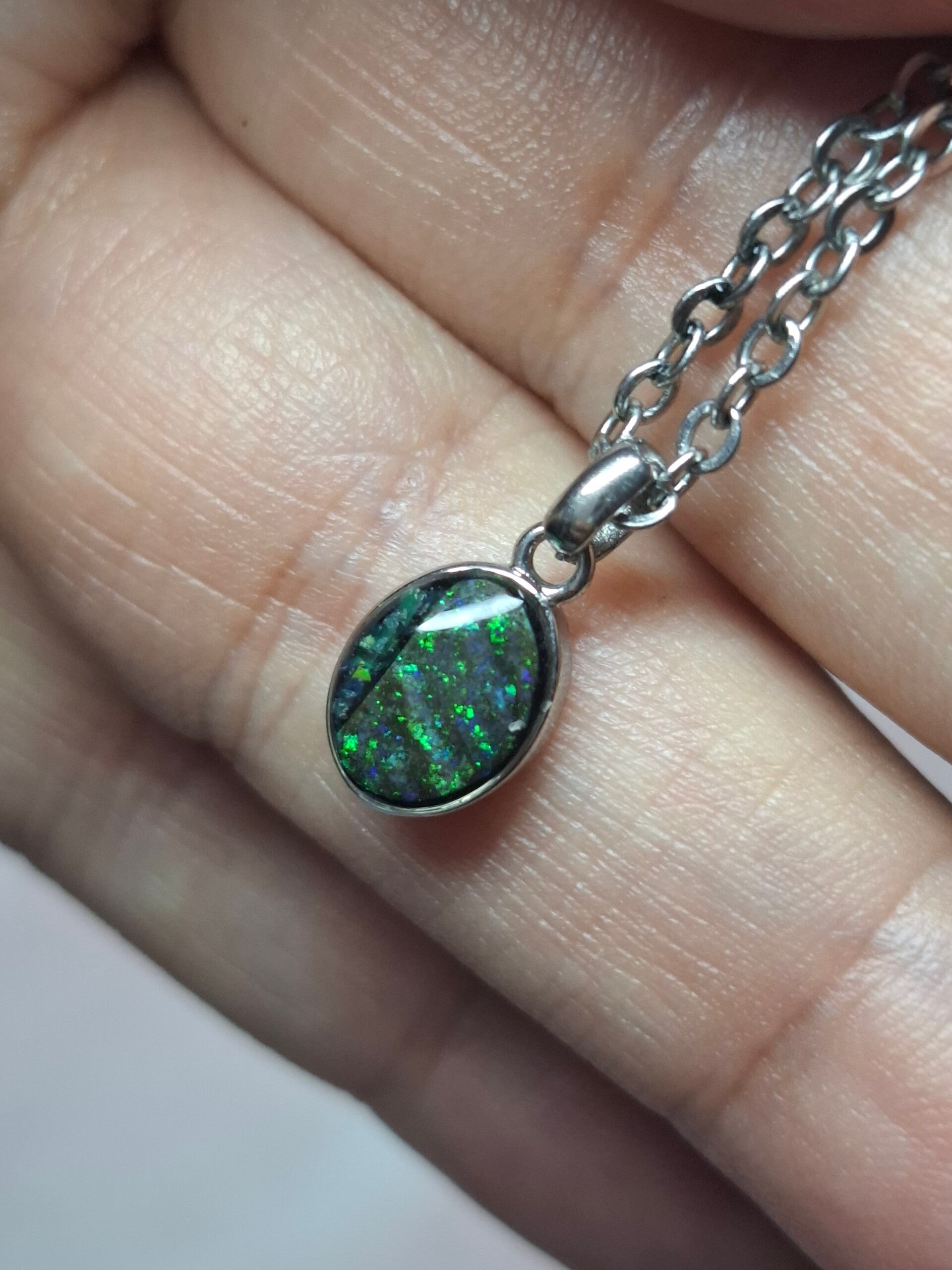 Pendentif opale noire boulder verte australienne, véritables non hydrophane 🤩 pailleté vert intense
