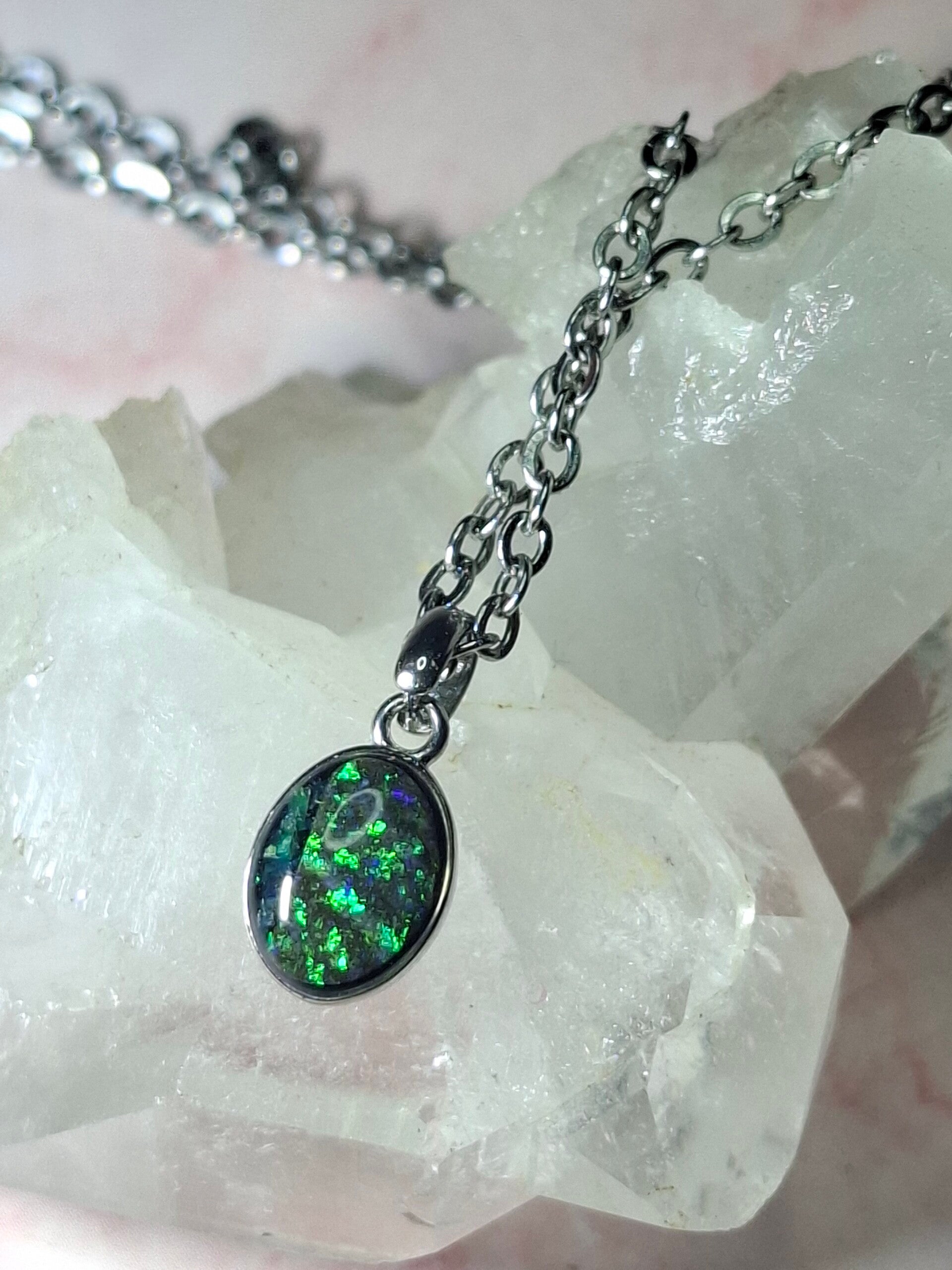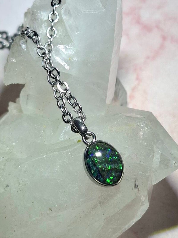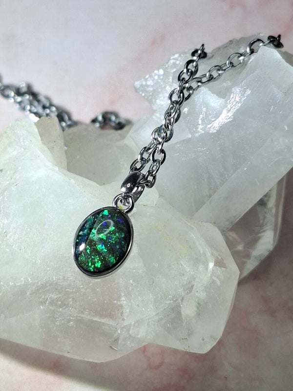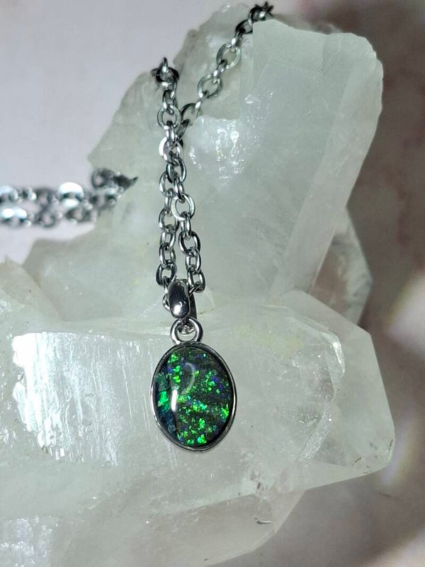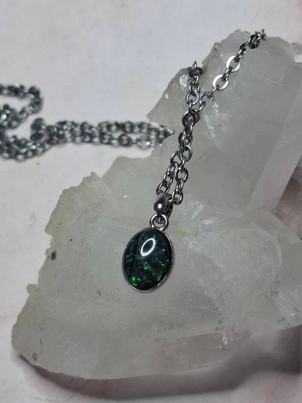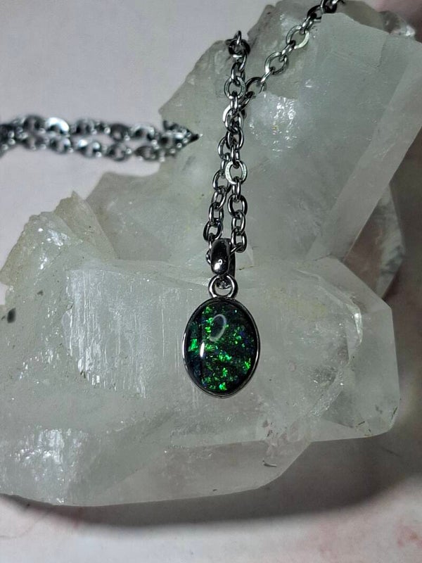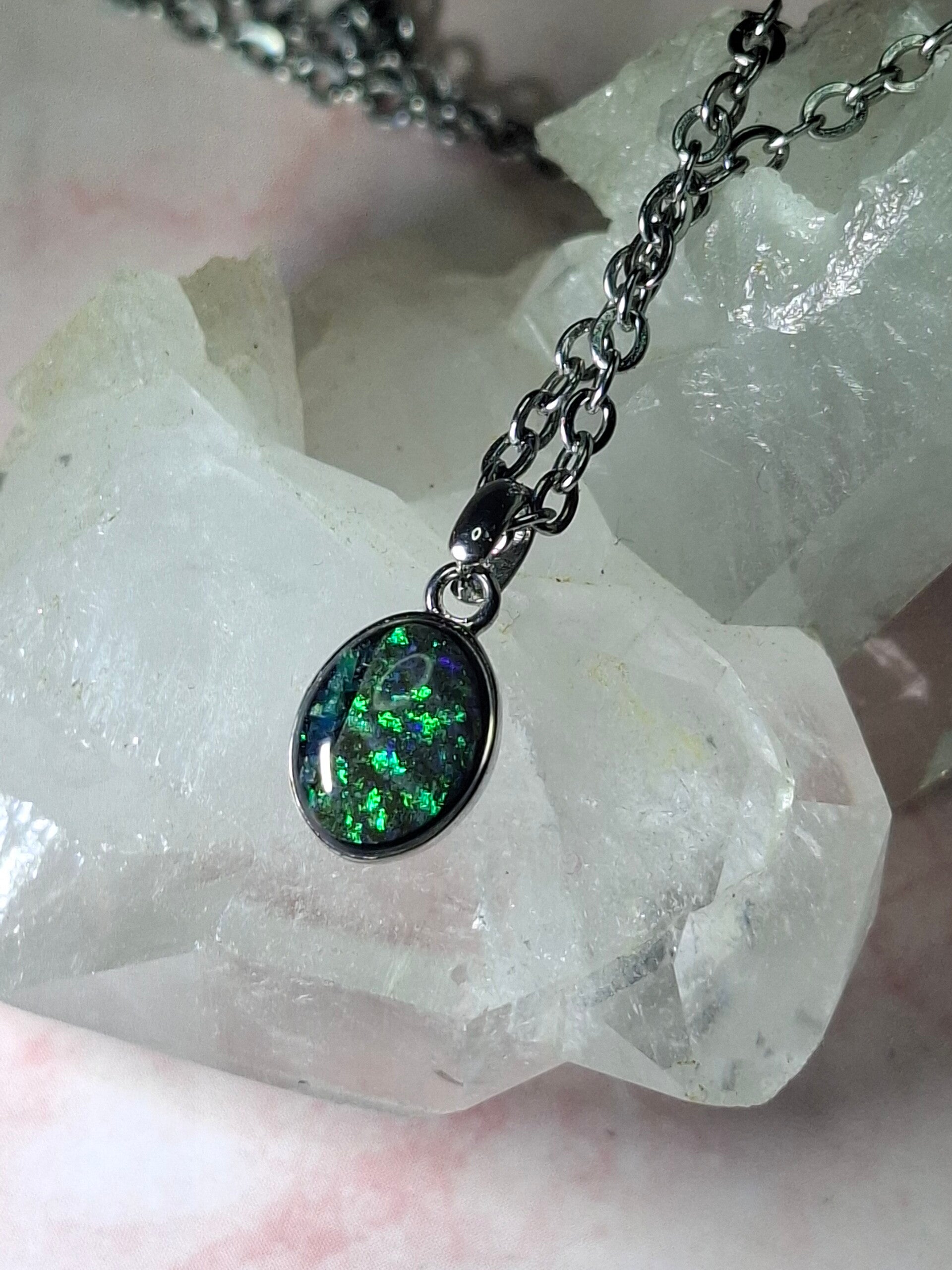 Pendentif opale noire boulder verte australienne, véritables non hydrophane 🤩 pailleté vert intense