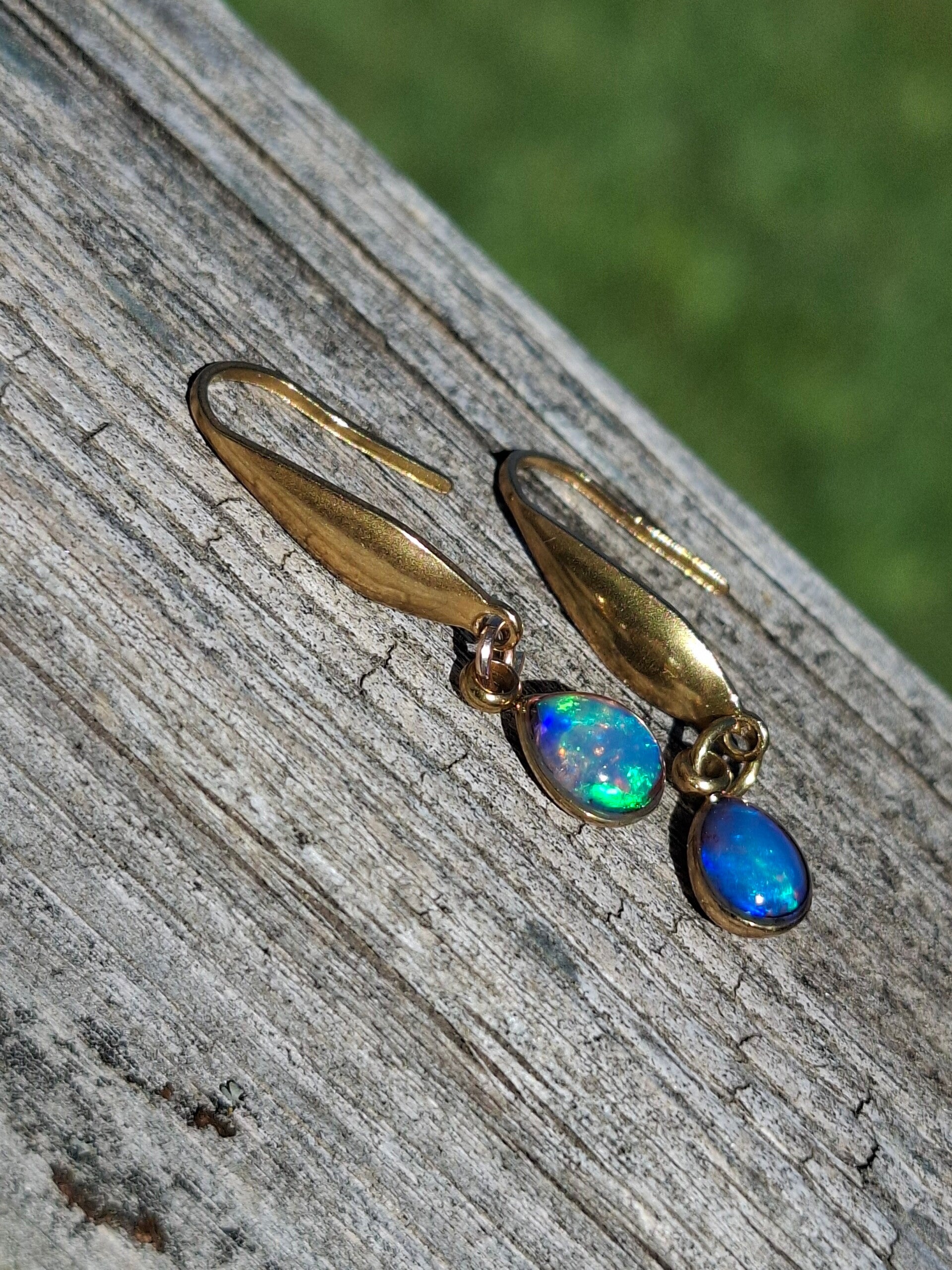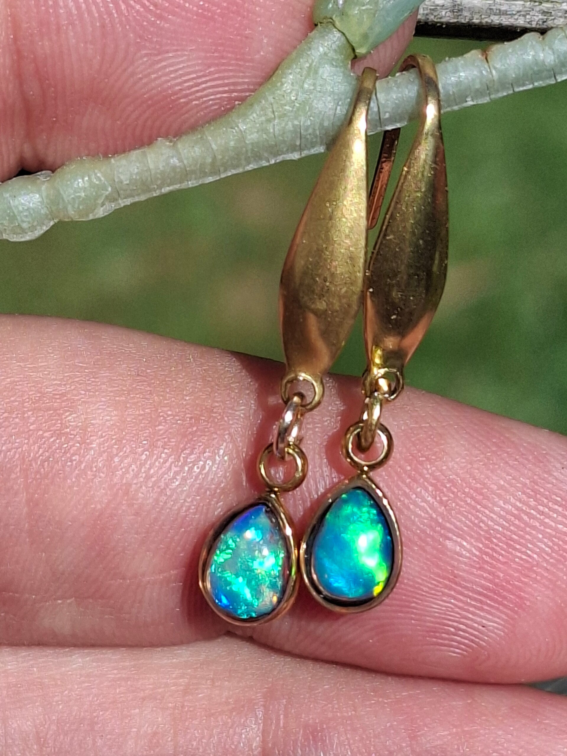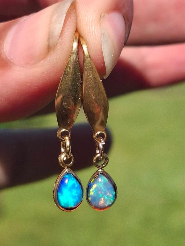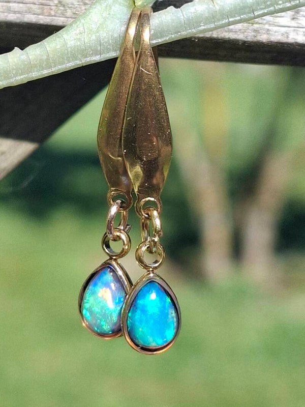 Boucle d'oreille avec opales véritables, pierres de 7x5mm, pierres authentiques